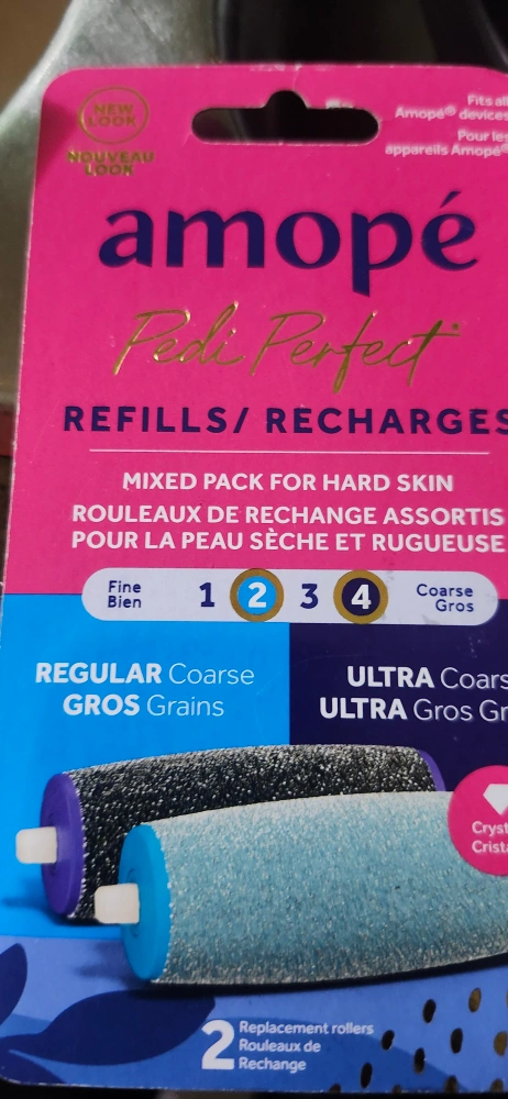 10Selling a mixed pack of Amopé Pedi Perfect refills for hard skin! This pack includes replacement rollers with varying coarseness to suit your needs. Get your feet feeling smooth and refreshed!