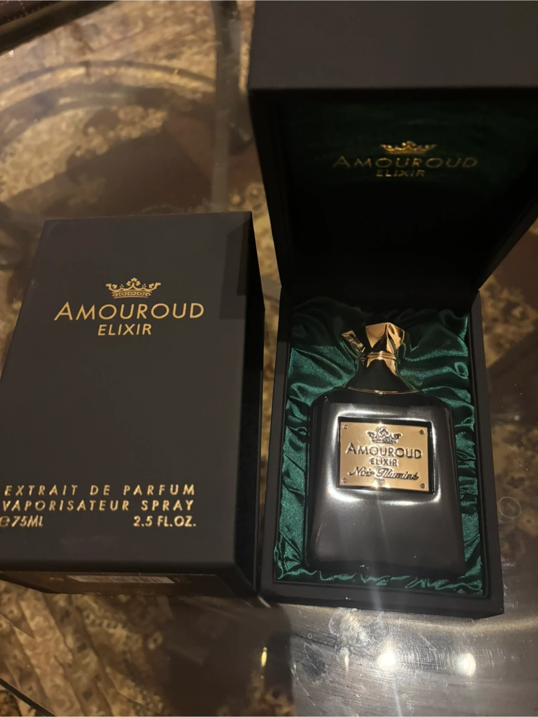 60Selling a bottle of Amouroud Elixir Noir Illuminé. It's an extrait de parfum in a 75ml bottle. The box is included and two spray only.