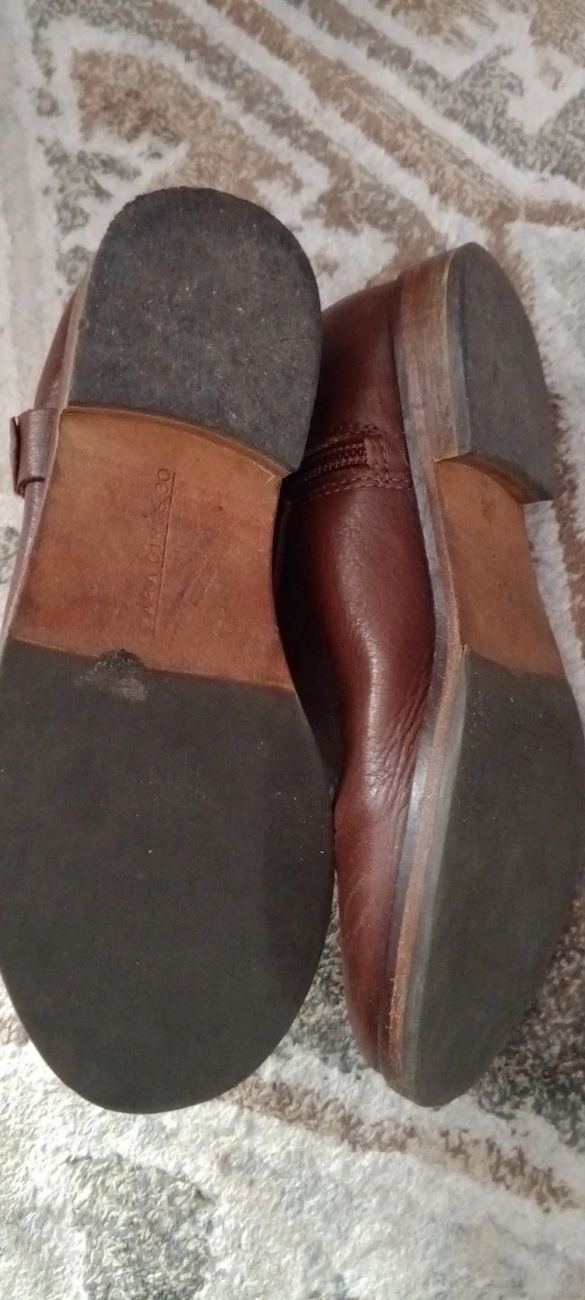 Zara Girls Brown Leather Ankle Boots