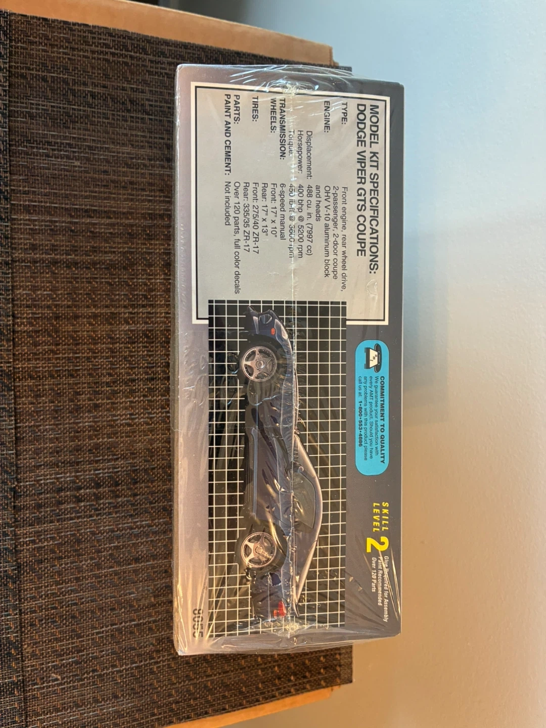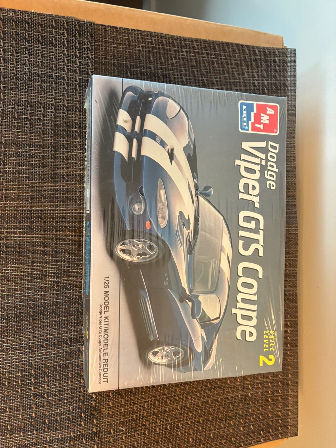 10Selling a brand new, still sealed AMT Ertl Dodge Viper GTS Coupe 1/25 scale model kit! Perfect for model car enthusiasts or anyone looking for a fun building project. The box includes over 125 parts and full-color decals. Please note that paint and cement are not included.