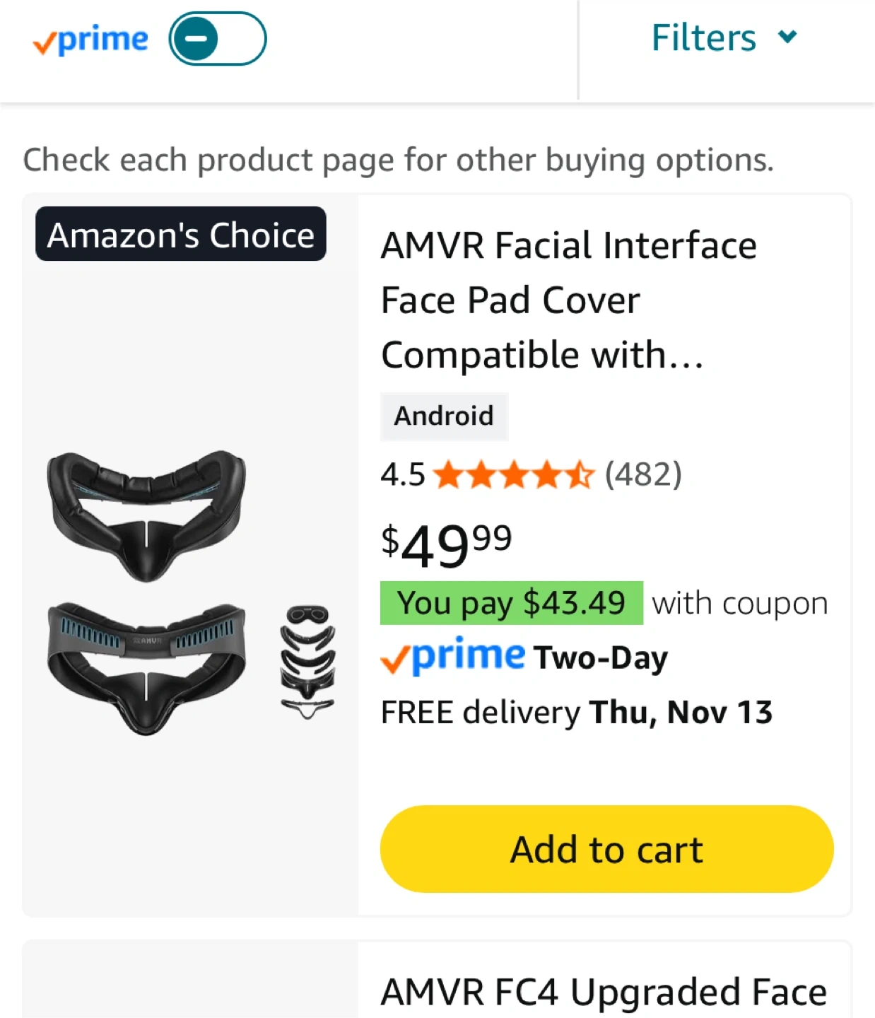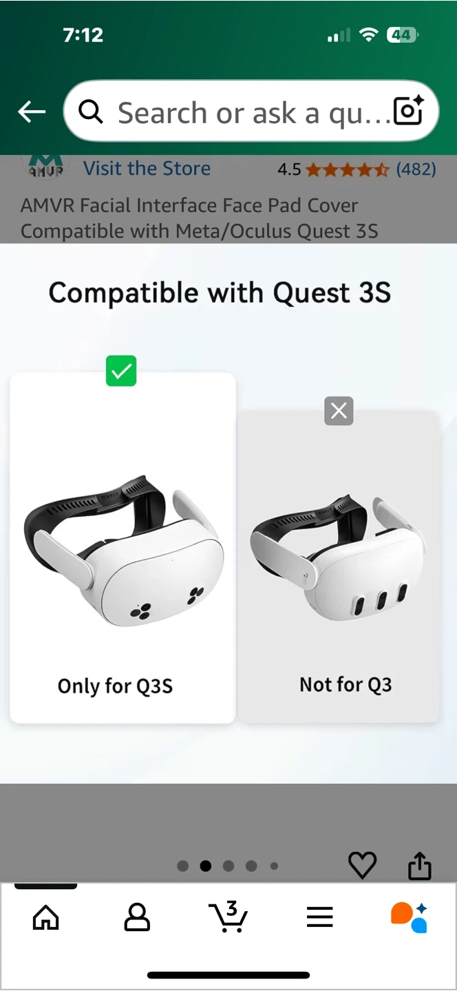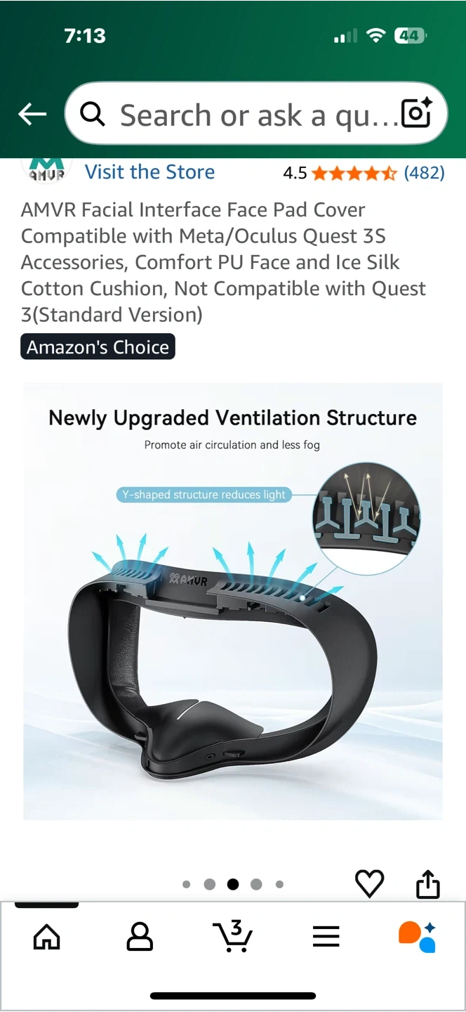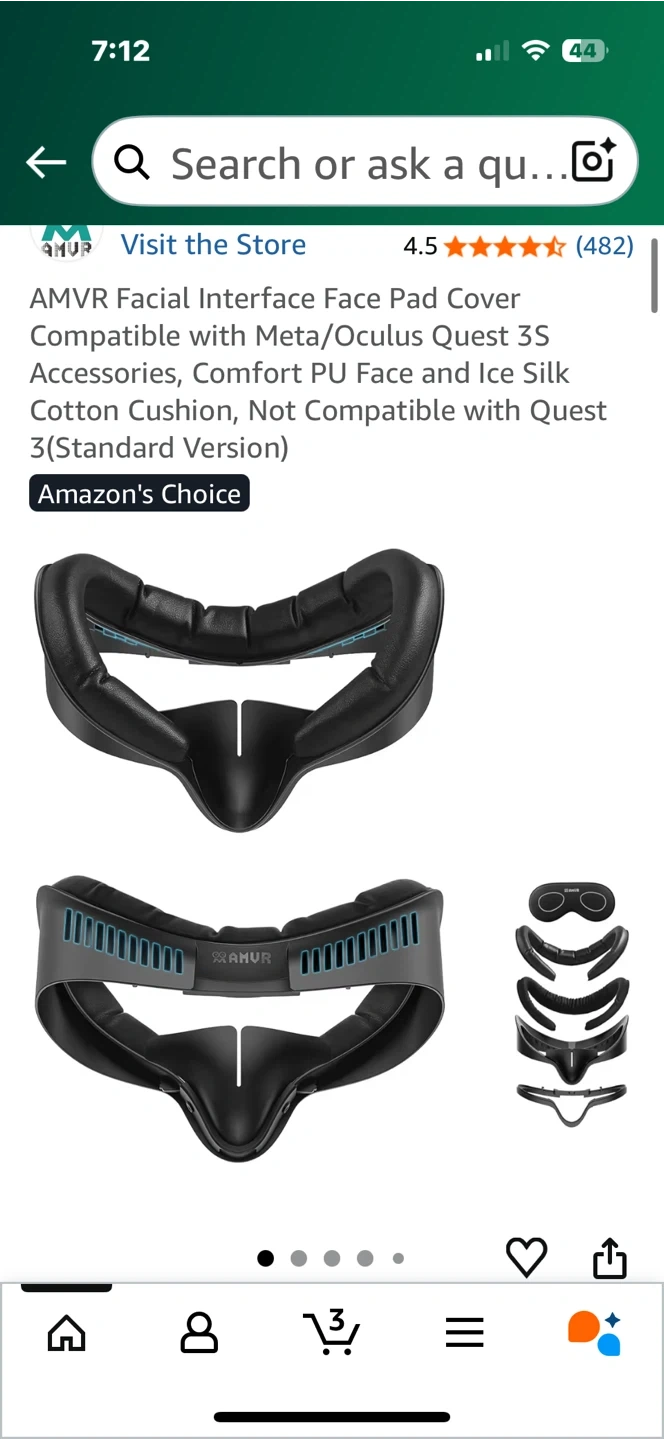Selling an AMVR Facial Interface Face Pad Cover, compatible with Meta/Oculus Quest 3S accessories. It's a comfortable PU face and ice silk cotton cushion.
