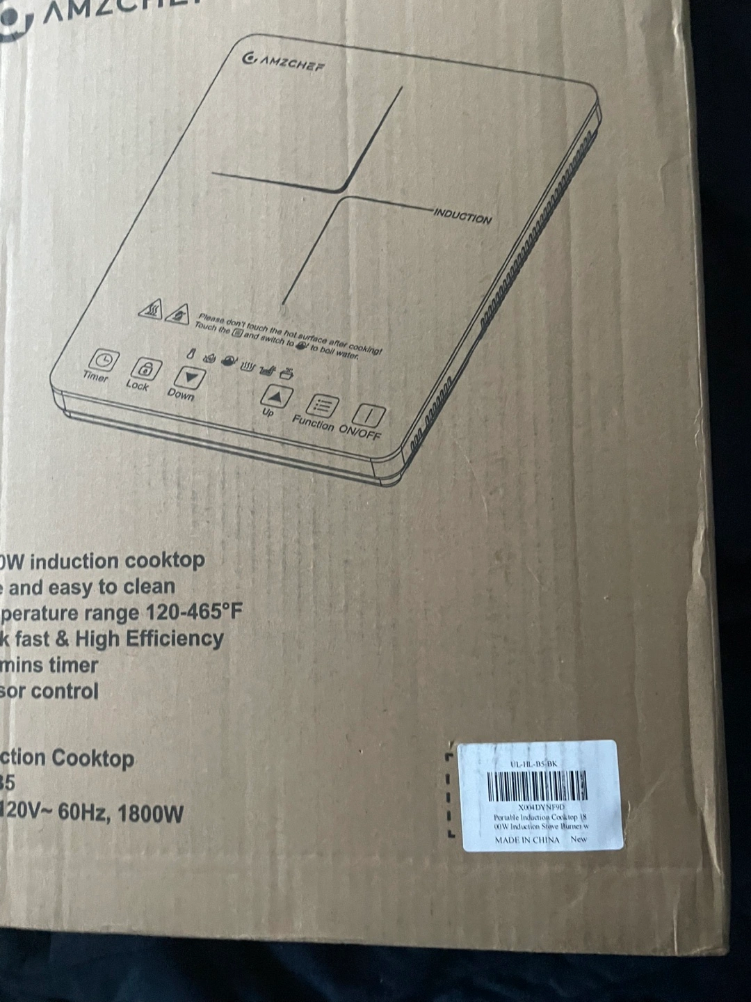 75Selling a brand new AMZChef Induction Cooktop, still in its original box! This cooktop offers efficient and easy cooking with a temperature range of 120-465°F. It heats up quickly and features a timer that can be set up to 185 minutes. It also has sensor touch control for ease of use. Perfect for any kitchen!
