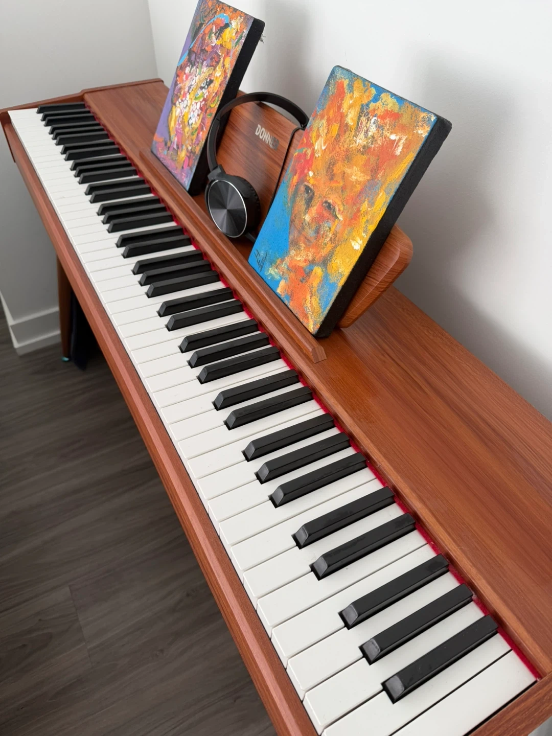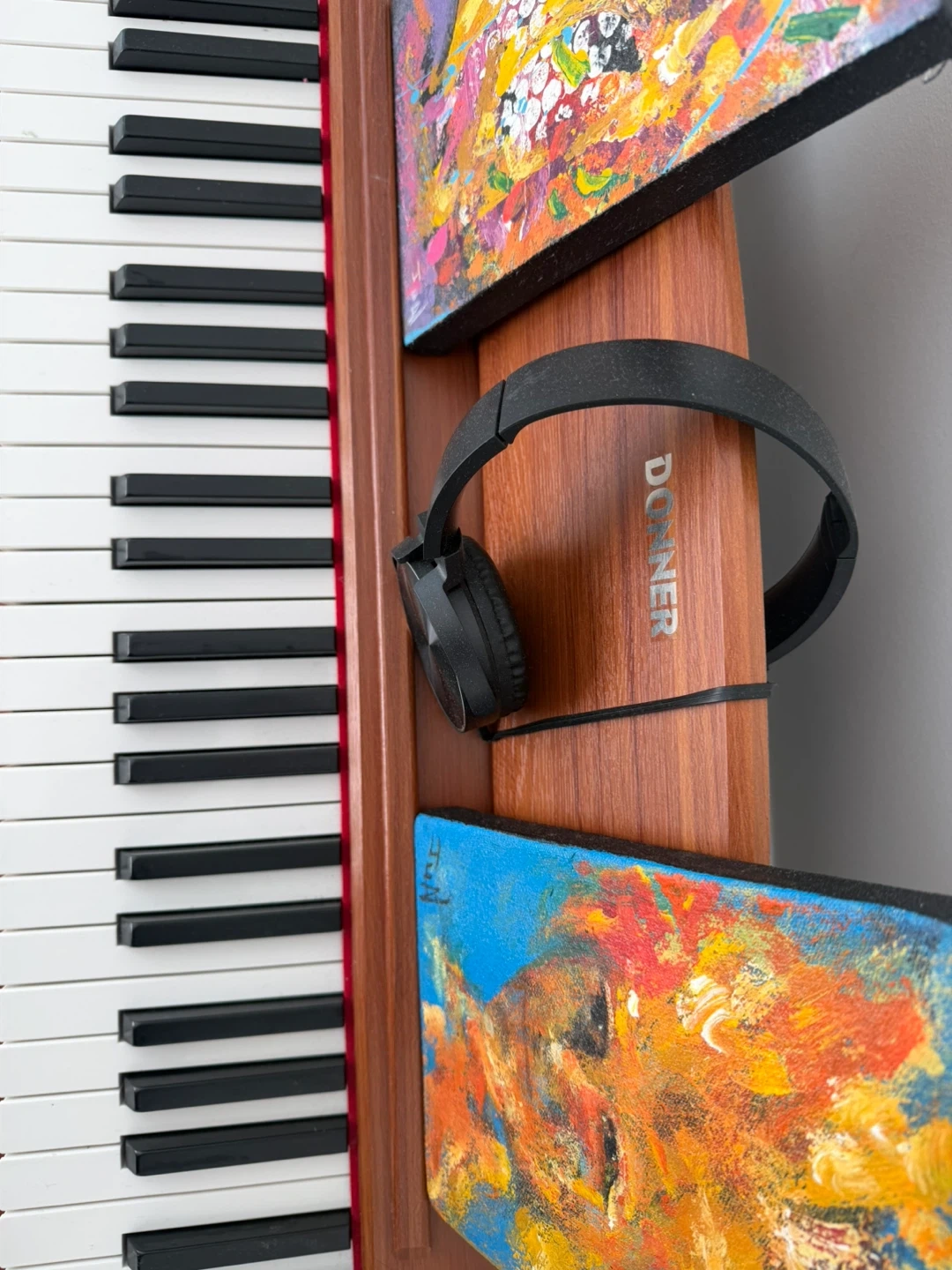 This is a Donner 88-key digital piano. It's in a nice wood-grain finish and comes with a sustain pedal and headphones. Perfect for learning to play! I can give invoice when bought brand new and it has barely been used 5 times.