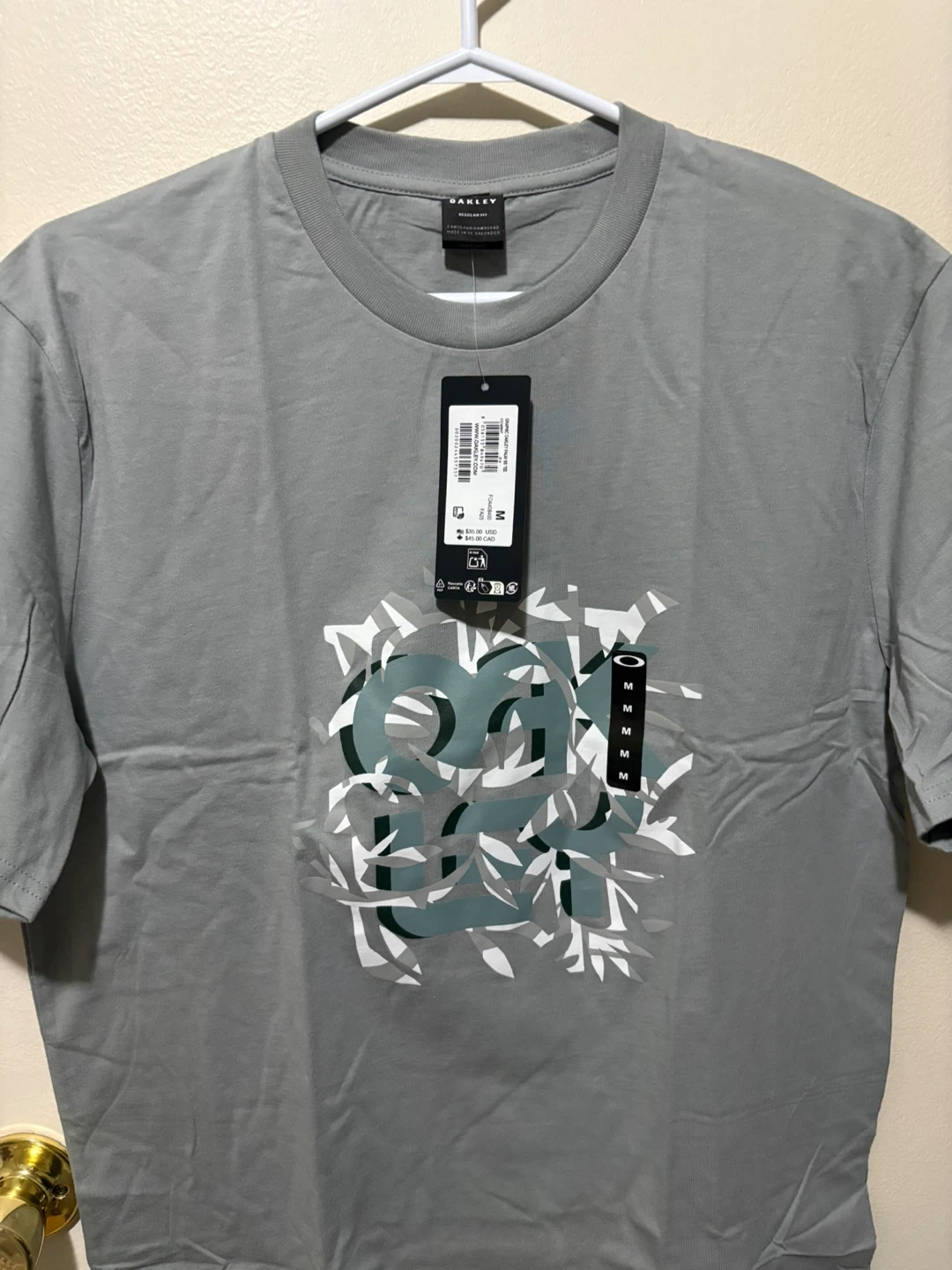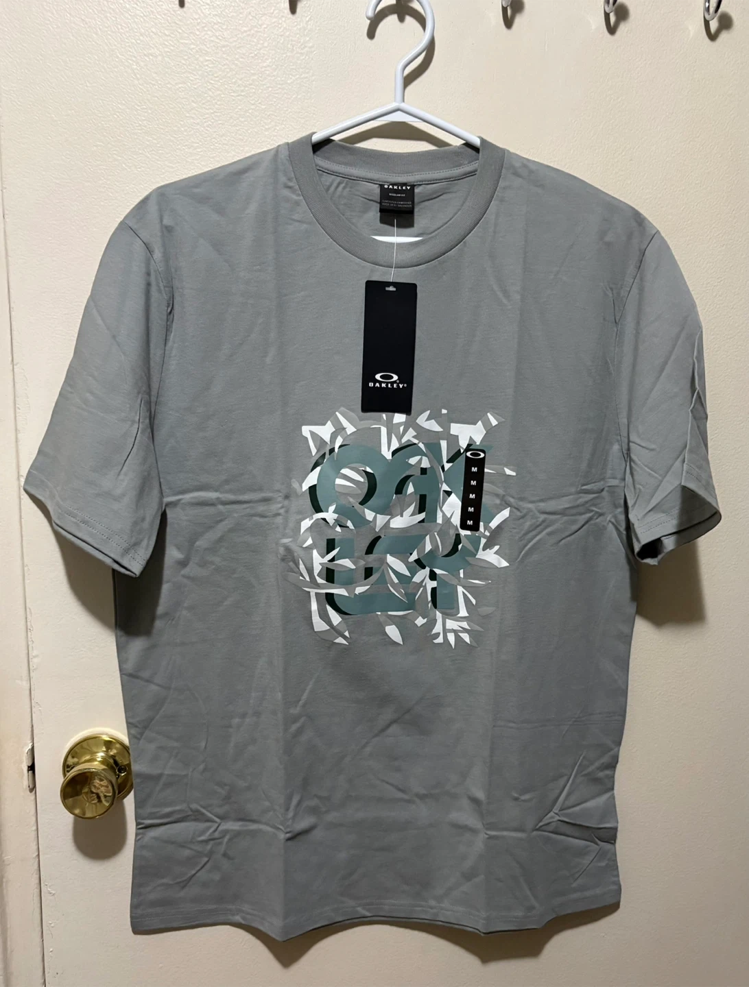 Brand new with tags, never worn Oakley t-shirt in a stylish gray colour. Features a unique graphic design on the front.