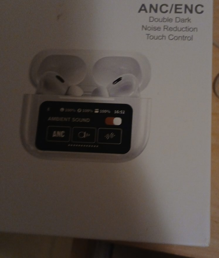 Selling a pair of ANC/ENC earbuds featuring double dark noise reduction and touch control! They come in a clear case with a digital display showing battery percentage and ambient sound controls