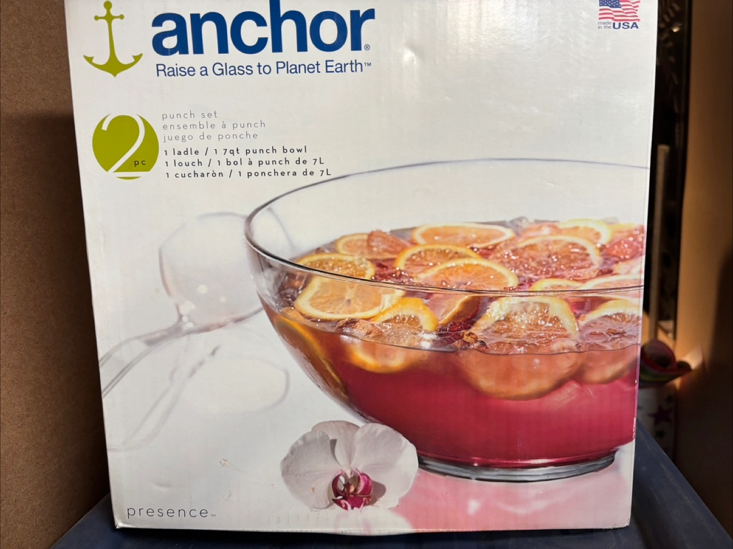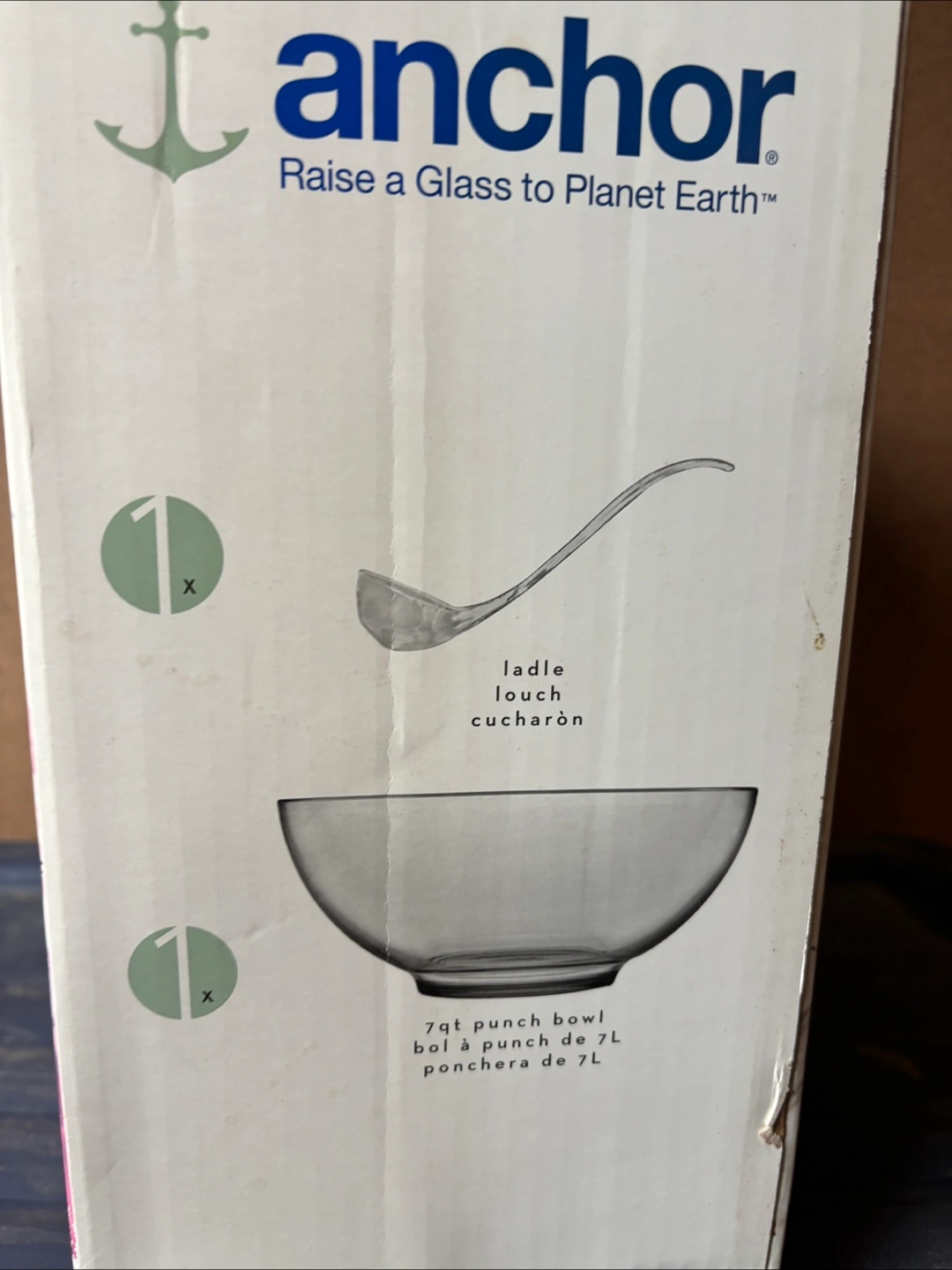 84Anchor Hocking punch set includes a 7qt punch bowl and a ladle! It's perfect for parties and gatherings. Raise a glass to planet Earth with this beautiful set