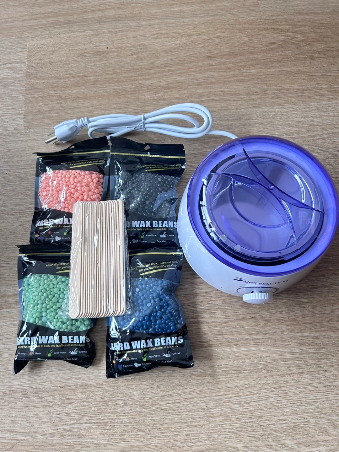 68Selling a complete waxing kit that includes the wax warmer and four bags of hard wax beans in different colours. Also comes with a pack of wooden spatulas so you're all set for waxing at home!
