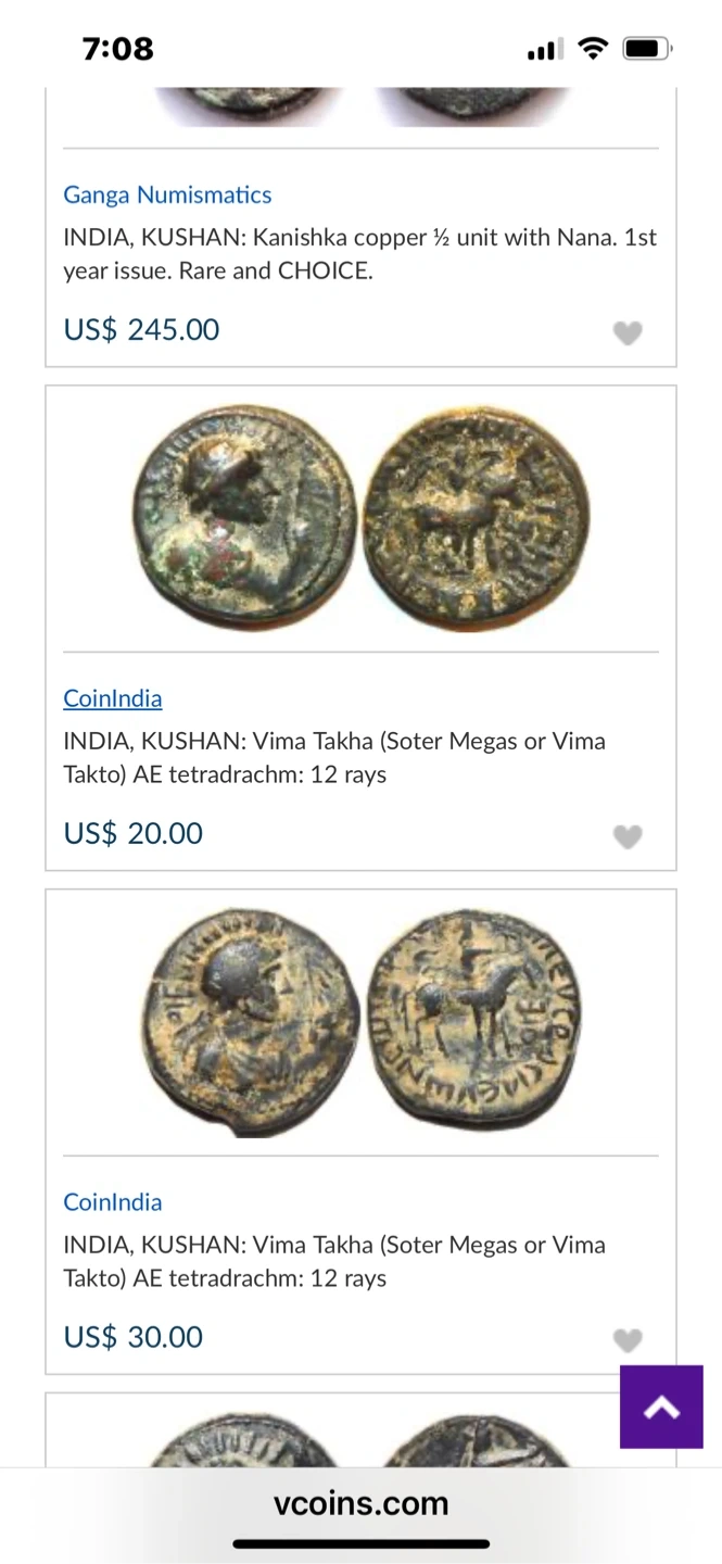 20825 dollars each Selling an ancient Kushan copper coin. It appears to be in fair condition, with visible details and wear consistent with its age. Please see the photos for a closer look!