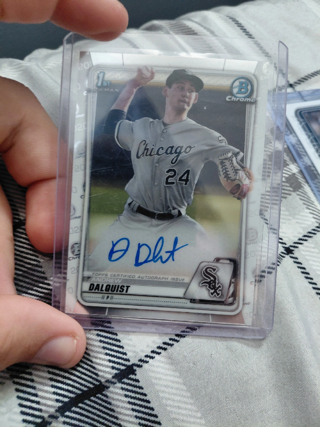 Selling an Andrew Dalquist Topps certified autograph baseball card! It's a Bowman Chrome card featuring him in his Chicago #24 uniform. A great addition to any baseball card collection! not free