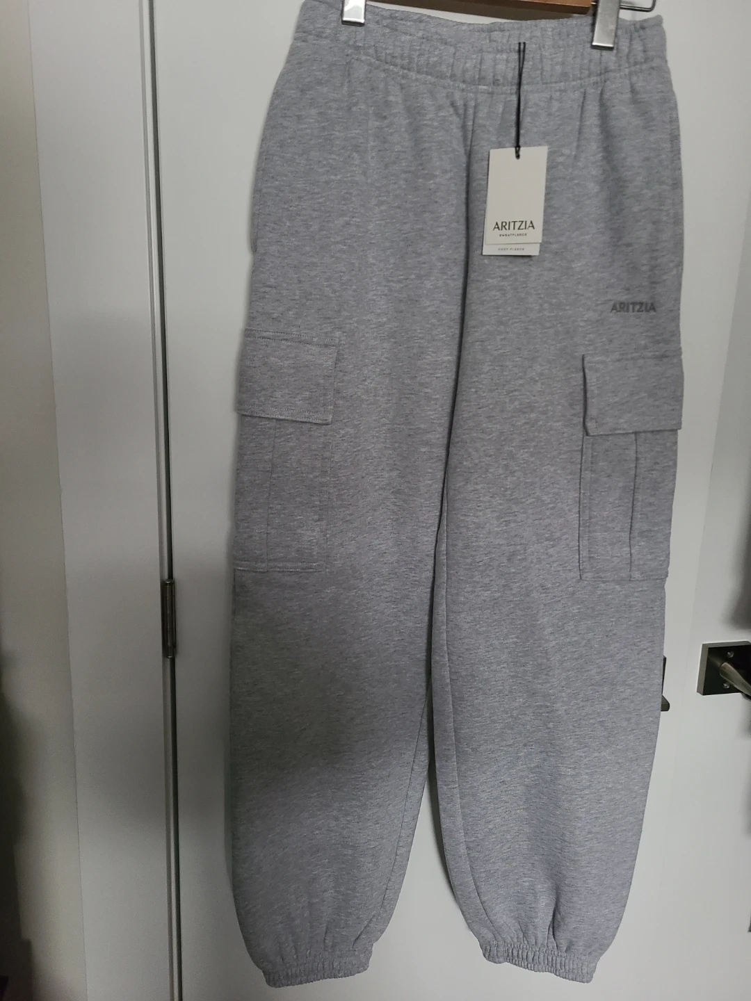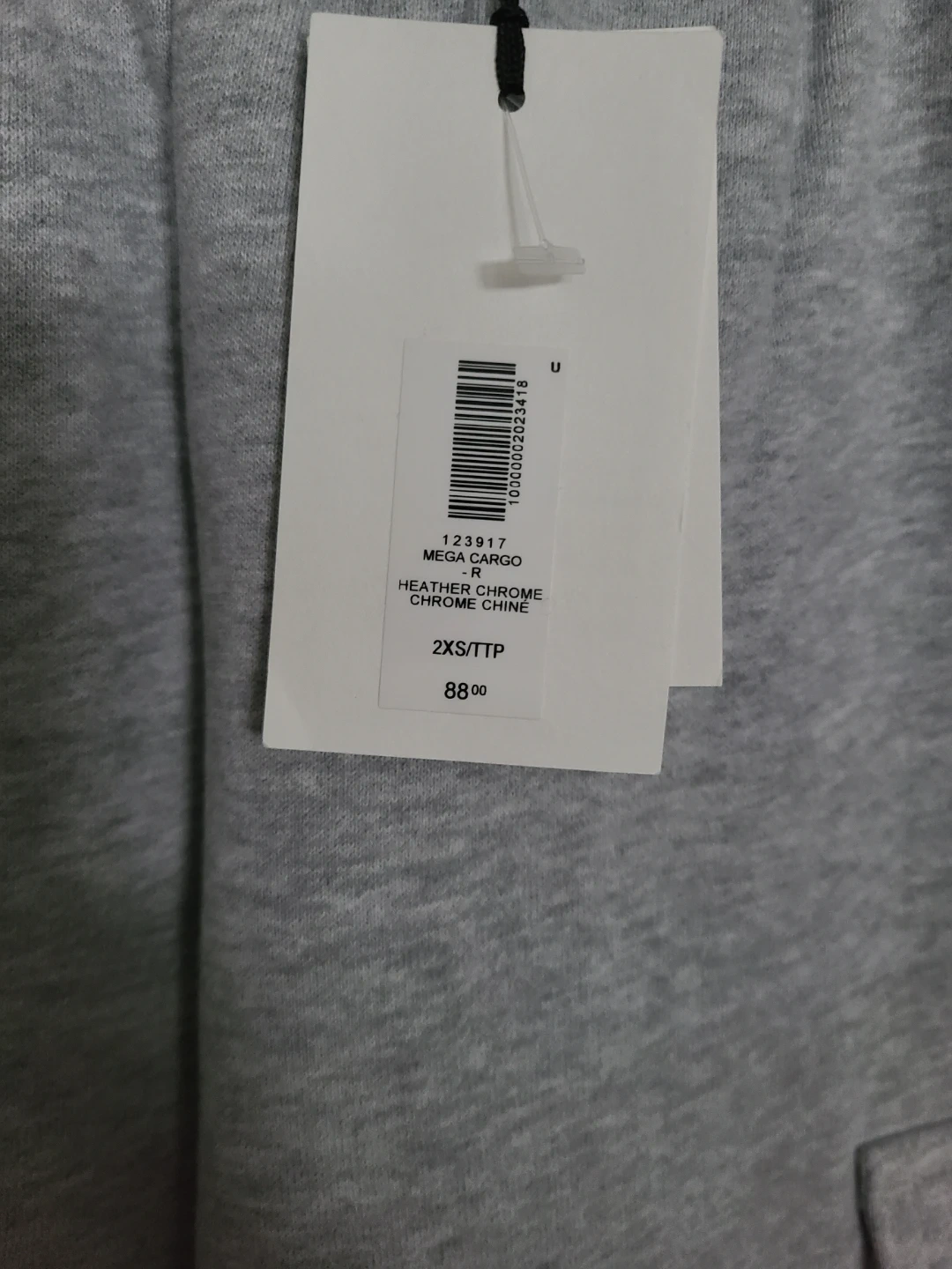 Aritzia Mega Cargo sweatfleece joggers in heathered chrome. They're a size 2XS. Made for cozy comfort!