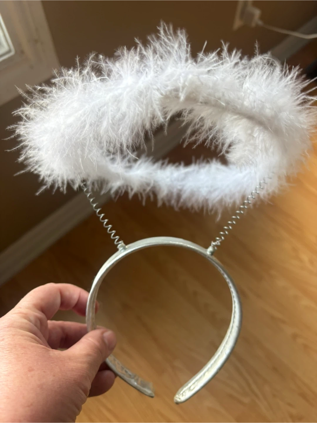 10Selling a fluffy white angel halo headband. Perfect for costumes or dress-up! It's in great condition.