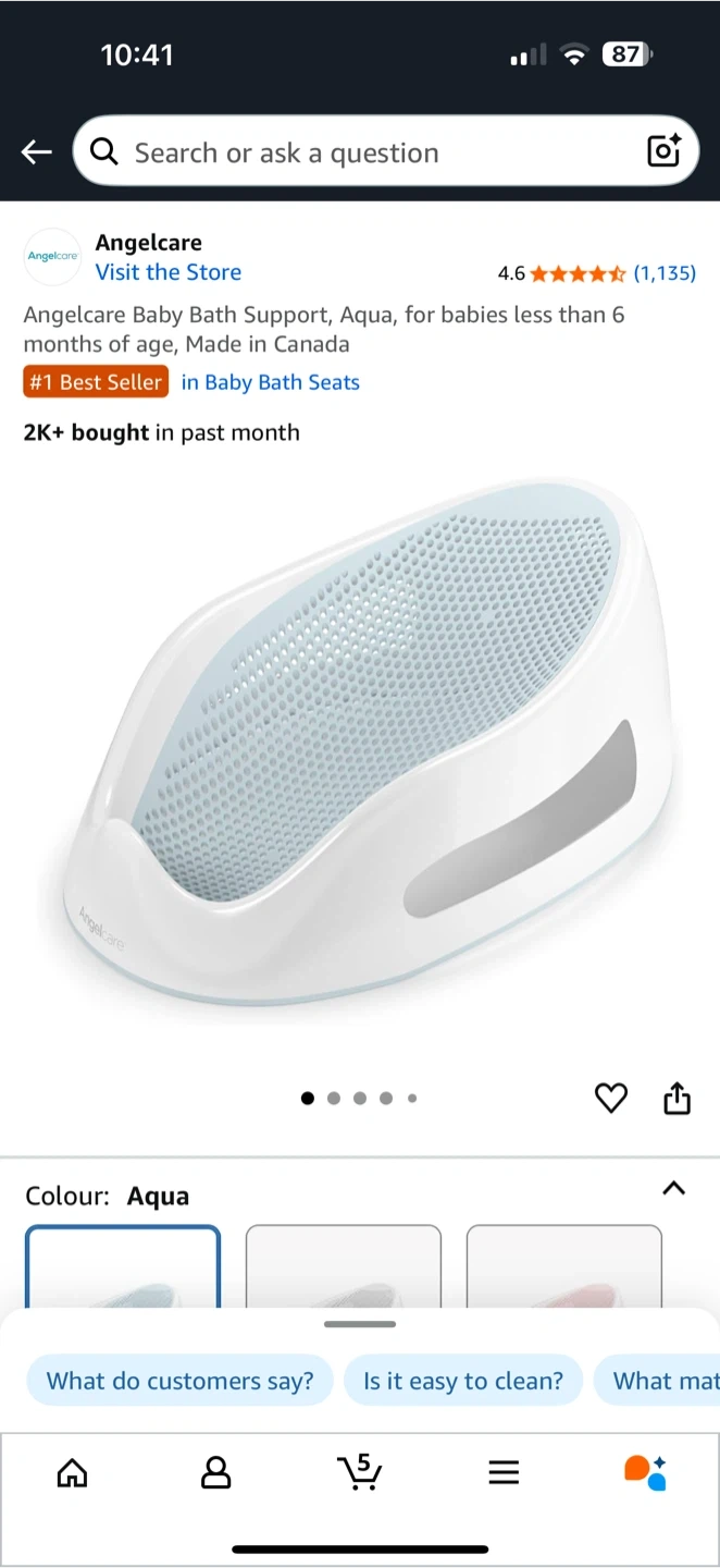 Selling an Angelcare baby bath support in aqua colour! It's designed for babies less than 6 months of age and is made in Canada. This is a #1 Best Seller in Baby Bath Seats Never used