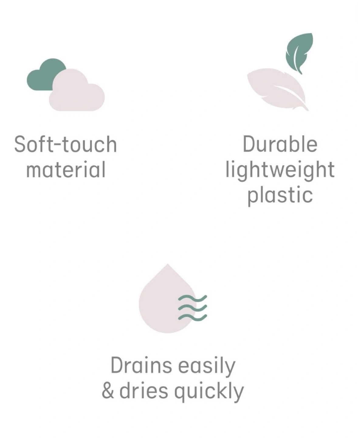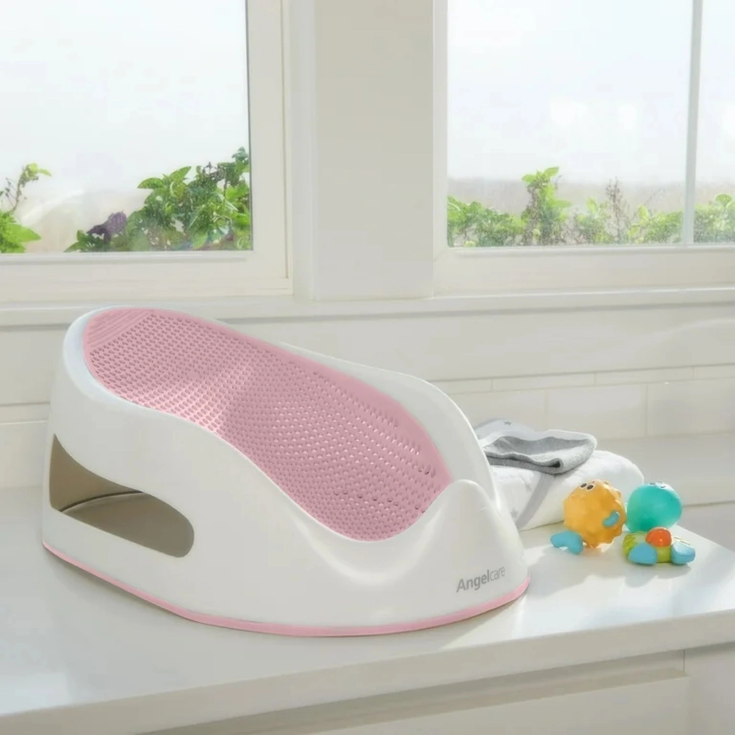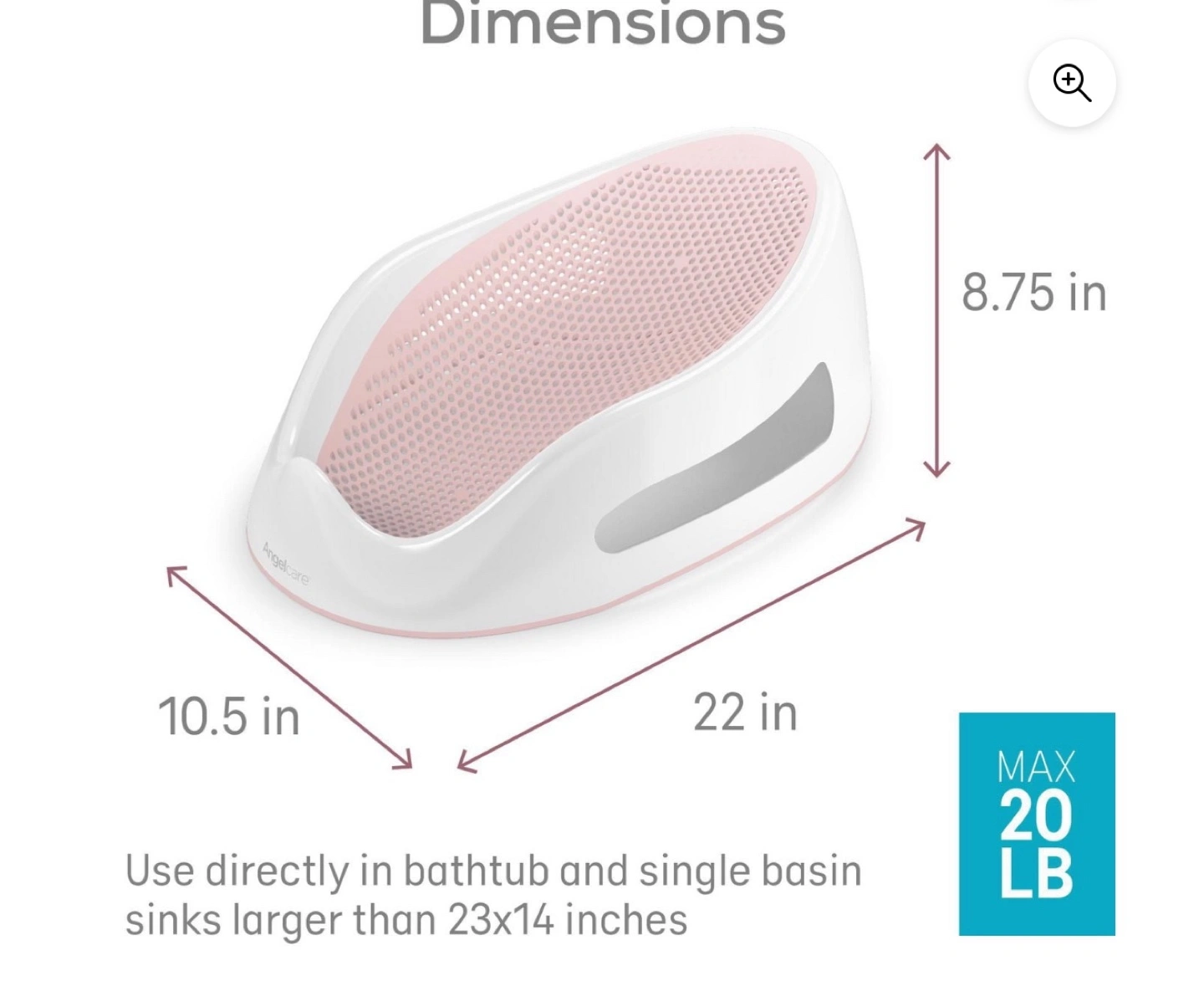 This Angelcare baby bath support is perfect for newborns up to 6 months (or 20 lbs)! It's designed to be used directly in the bathtub or in single basin sinks larger than 23x14 inches. The soft-touch material is gentle on baby's skin, and it's made of durable, lightweight plastic that drains easily and dries quickly. Dimensions are approximately 22 inches long, 10.5 inches wide, and 8.75 inches high