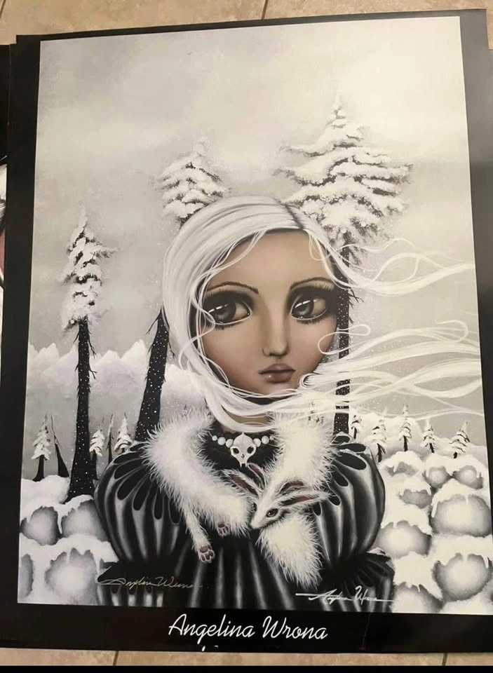 3 large stock poster prints - by Angelina Wrona AUTHENTIC. Angelina Wrona PERSONALLY SIGNED ALL THESE POSTERS!! Bought back in 2011, during a family visit in Kemptville. Got these framed and hung up on the wall 2 side by side and one facing. Unfortunately one fell forward and hit the other 2 causing all 3 frames to fall down the stairs. Some damage noted on 2 posters, 2 scuffs on the black portion and rip that can be disguised. These are sold as is, poster no frames. Poster measures : 20” x 30”. $40 for all 3. Pick up only: Etobicoke(Martingrove/Silverstone). Cash or e transfer accepted.