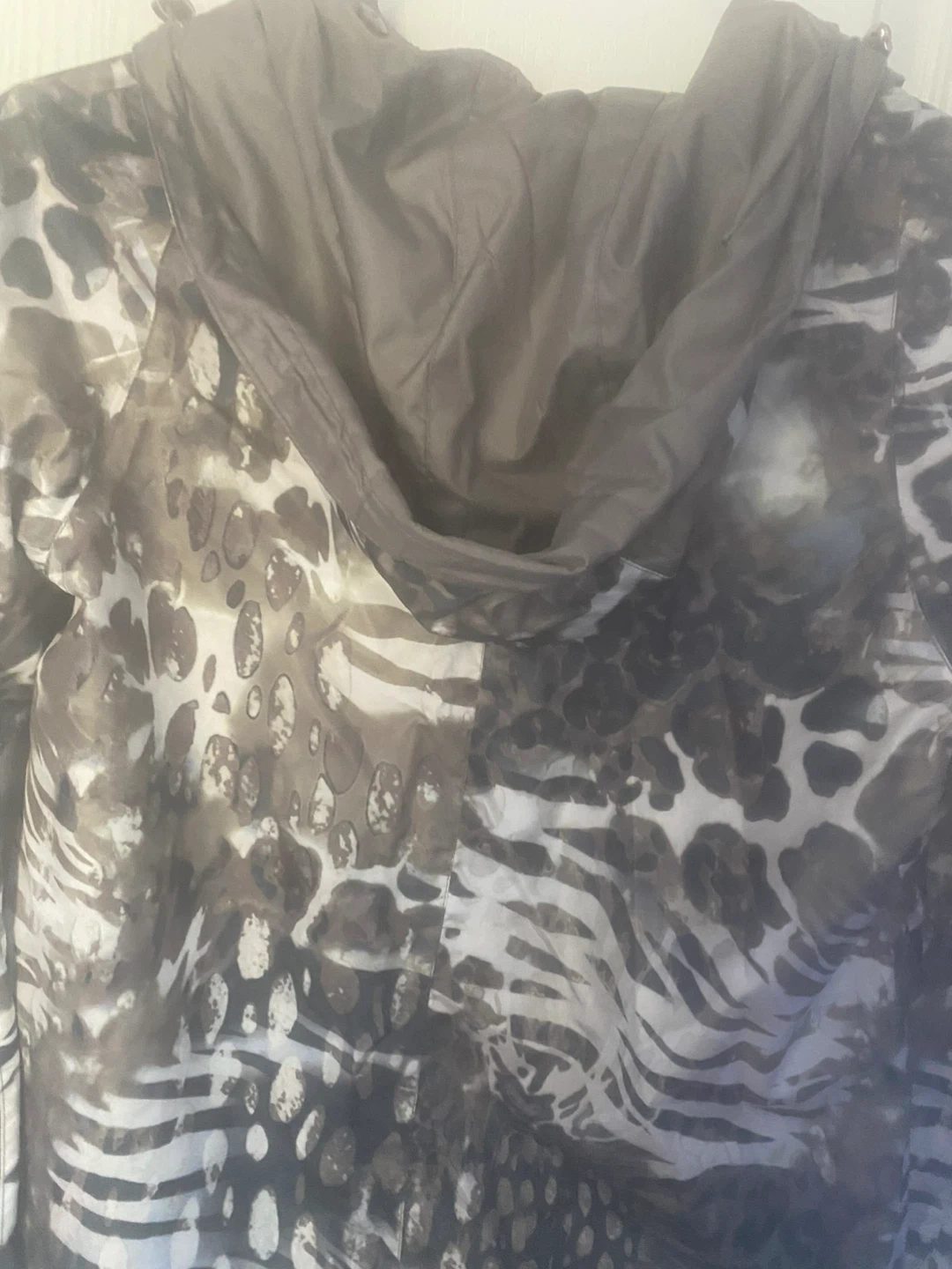 1000+Selling a coat with a unique animal print design. It's in great condition and perfect for those rainy days. The coat features a hood and button closures. A stylish and practical addition to your wardrobe!suitable for Fall/Spring weather