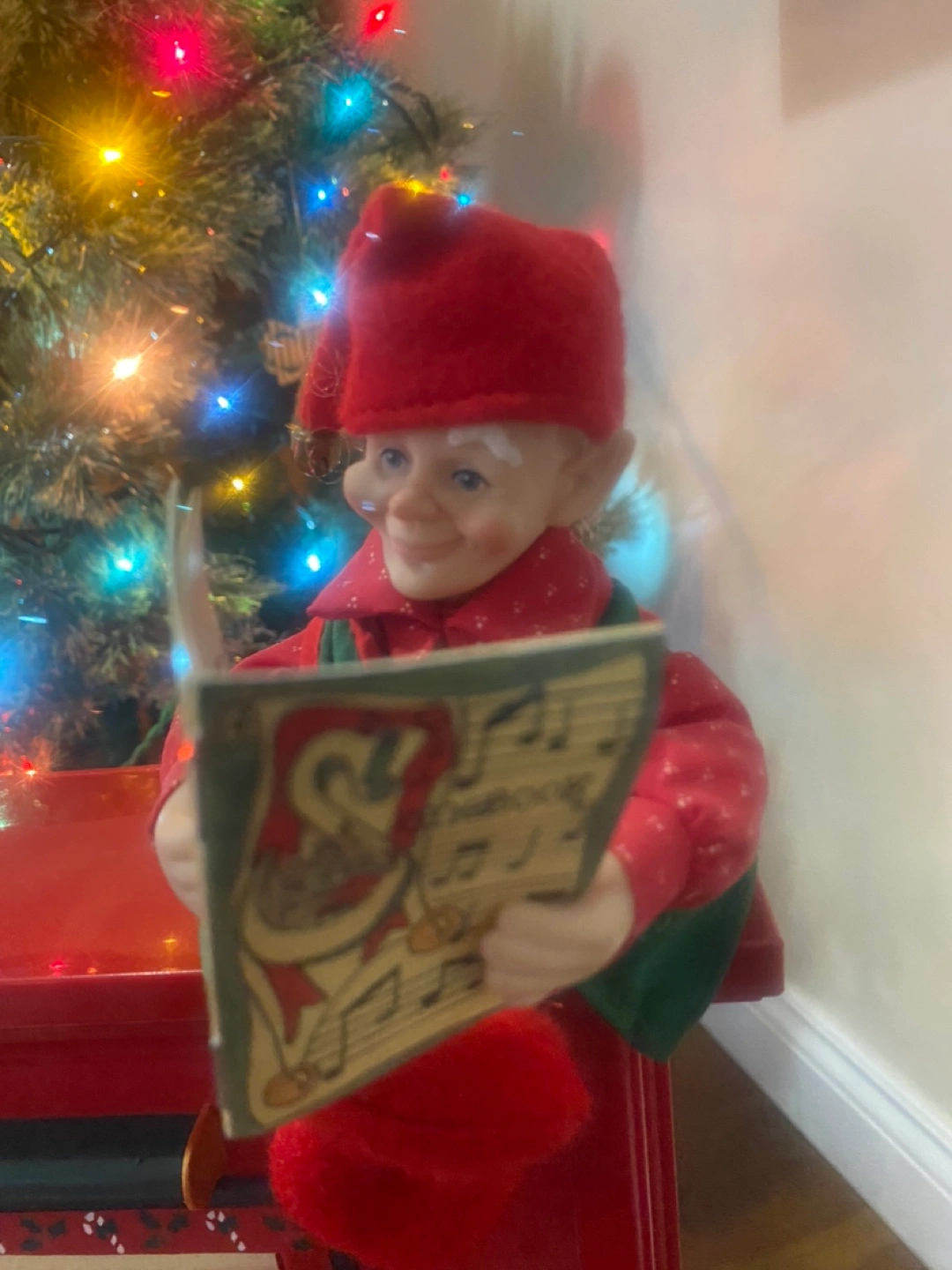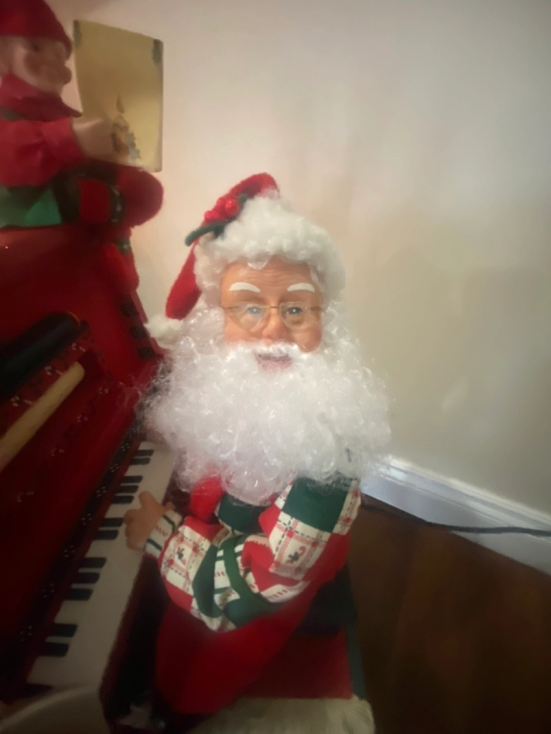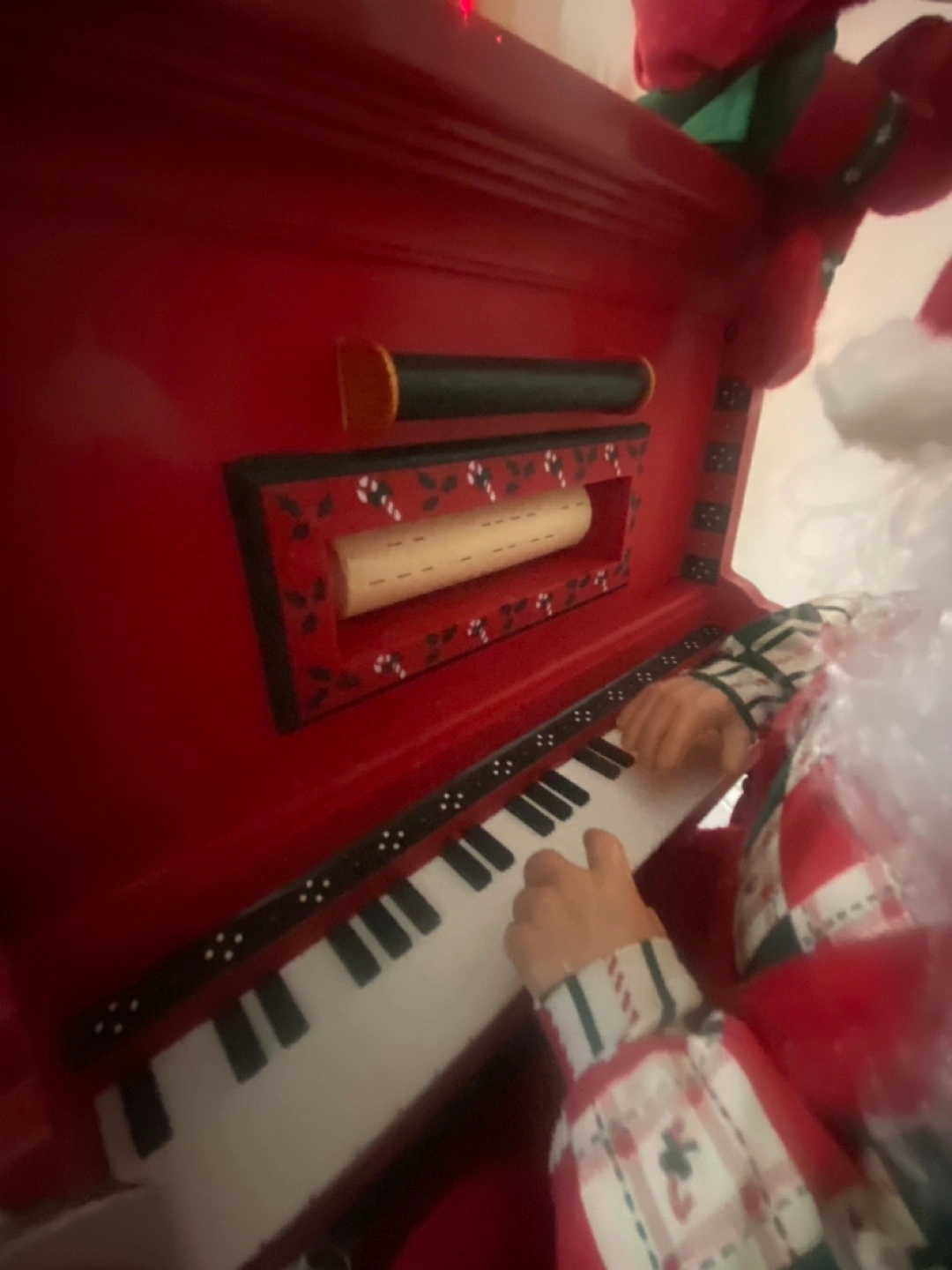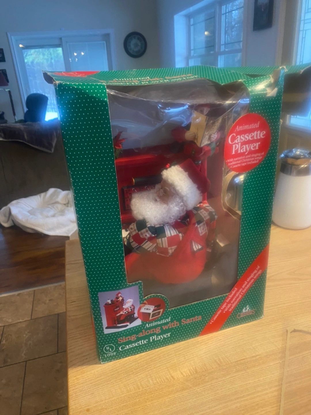Vintage Animated Santa and elf playing piano, includes cassette player. Plays six traditional Christmas songs. Sings and tells a stories . Pick up Port Elmsley Perth