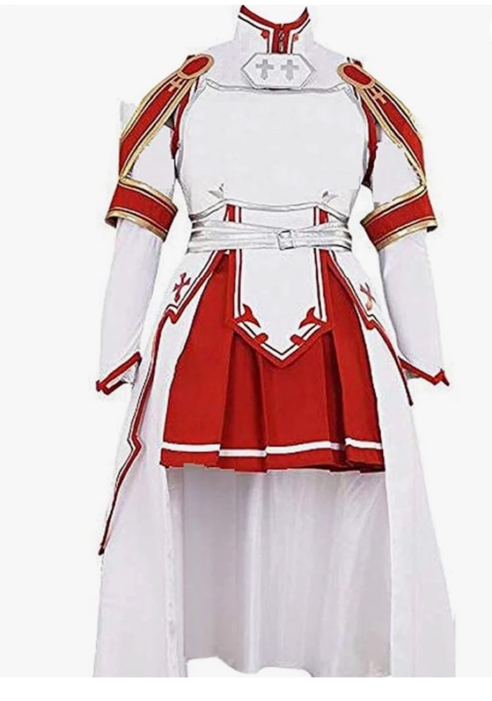 76Get ready to step into the world of Sword Art Online with this Asuna cosplay costume! It features a white and red design, perfect for conventions or just showing off your love for the series. The costume appears to be in great condition, ready for its next adventure