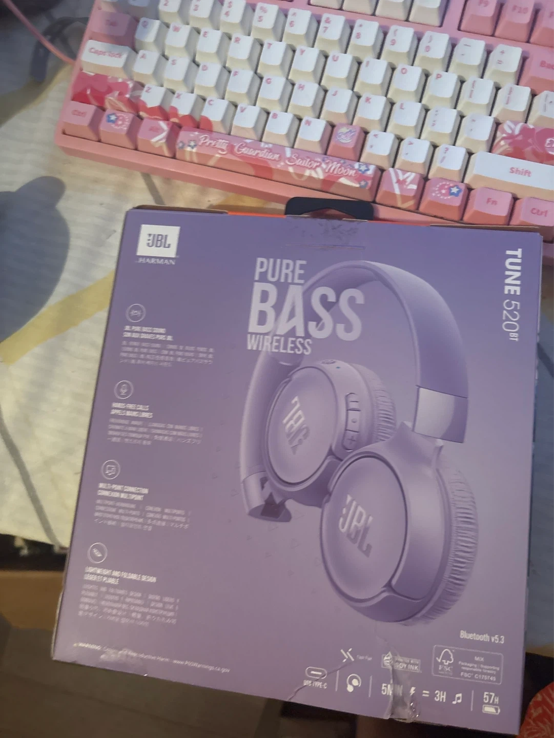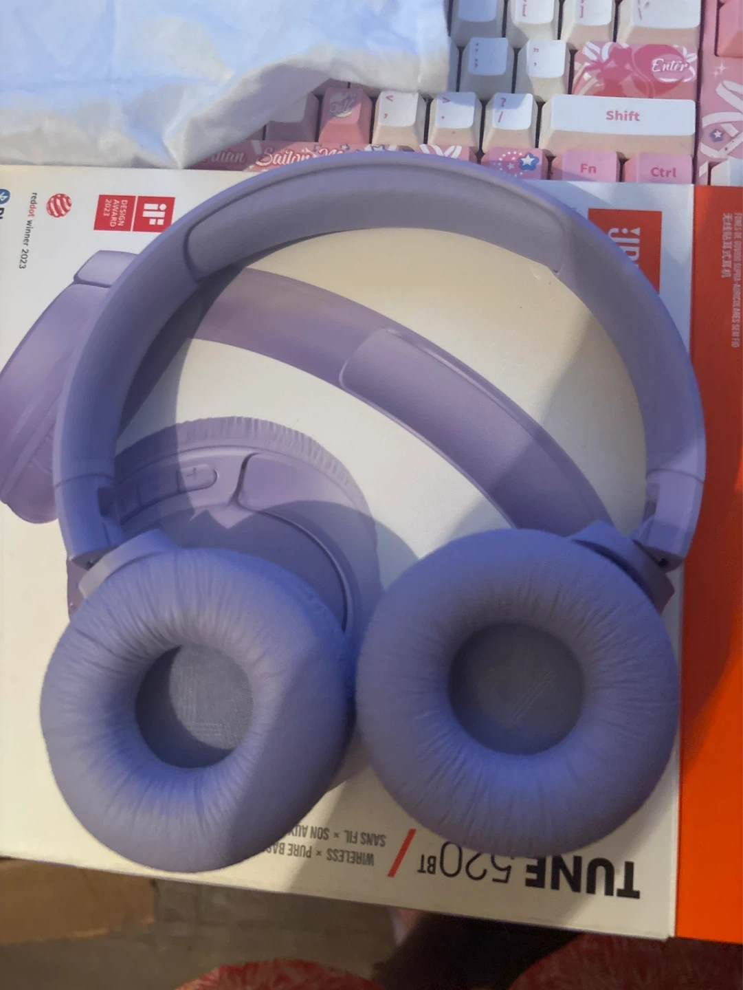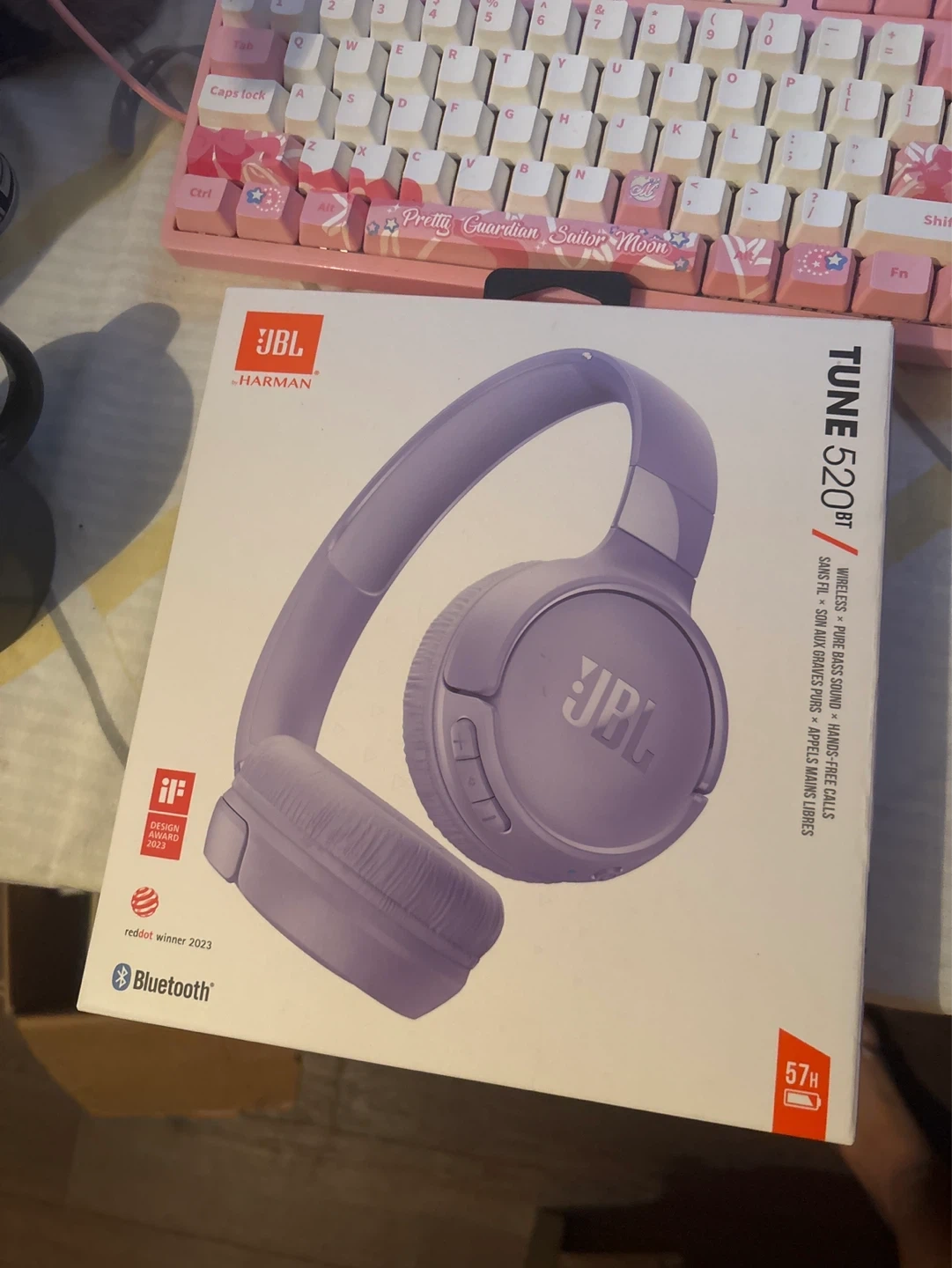 JBL Tune 520BT wireless on-ear headphones in a lovely purple colour. These headphones offer Pure Bass sound and multipoint connection. They provide up to 57 hours of playtime on a single charge. Includes a USB-C charging cable. It comes with the charger. It’s really comfy. I’m selling it because I don’t use it anymore. It’s in the good shape.