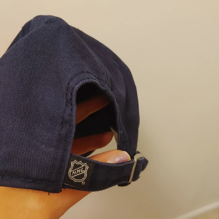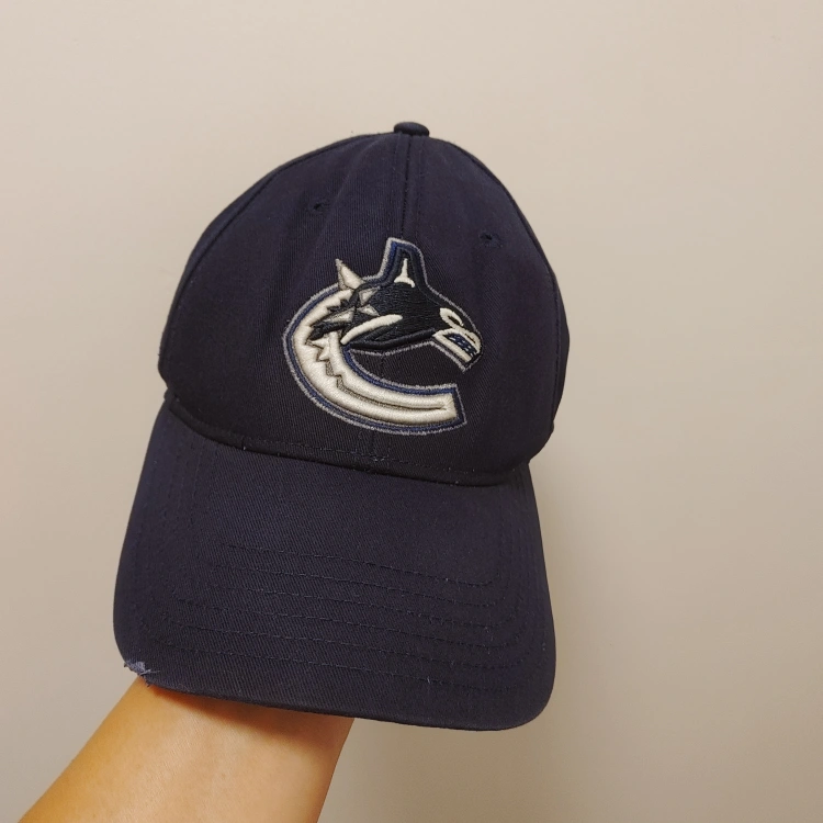 Navy blue Vancouver Canucks baseball cap. It's OS/TU size and made of 100% cotton. Features the team logo embroidered on the front.
