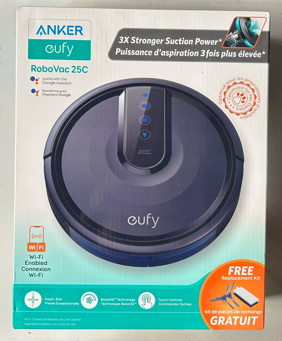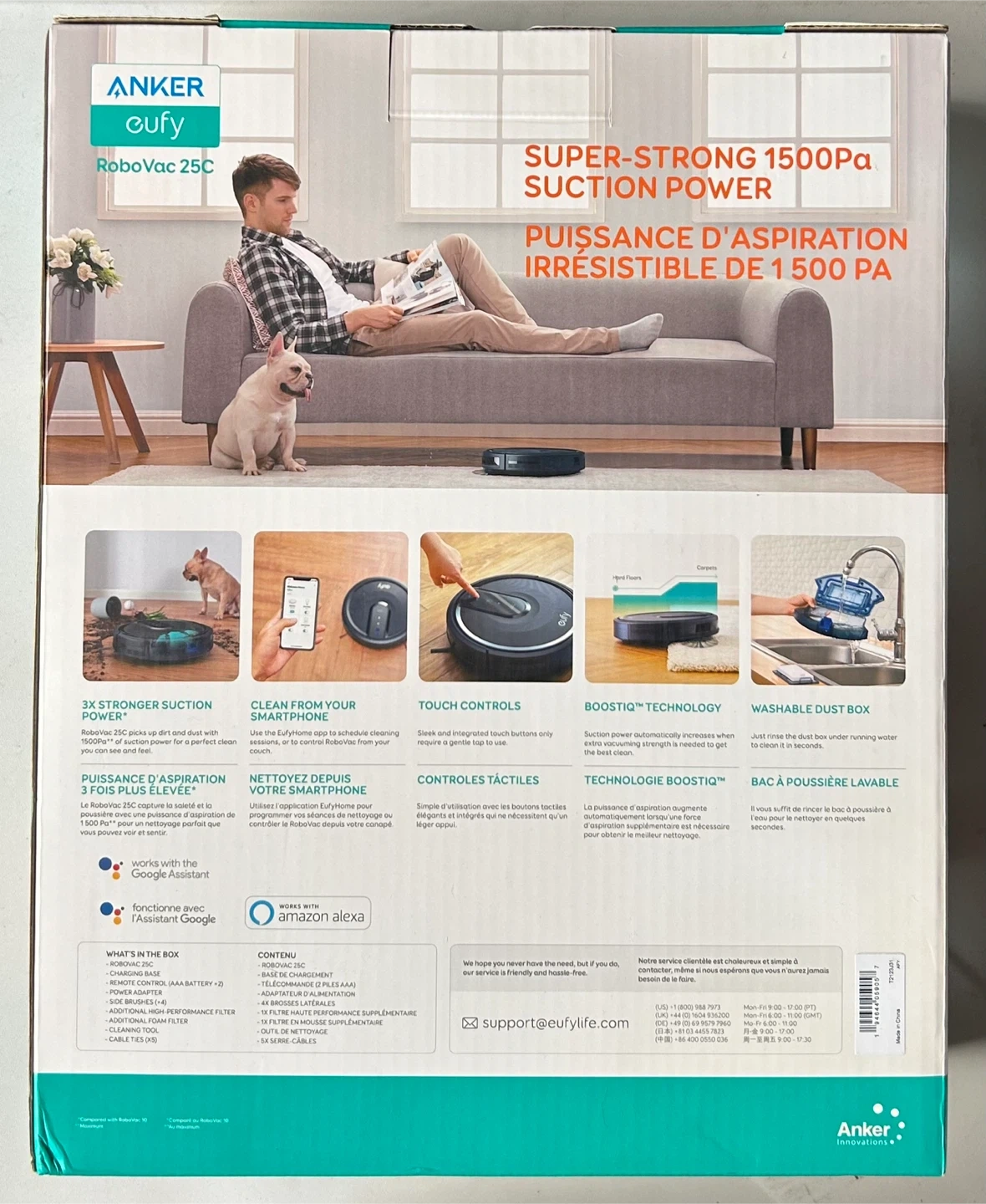 202Selling a Brand New! Anker Eufy RoboVac 25C robotic vacuum cleaner. Key features: - Super-strong 1500Pa suction power - 3X stronger suction power - Clean from your smartphone - Touch controls - BoostIQ technology - Washable dust box - Slim: Ultra Thin 2.85" Design Glides Under Furniture - Powerful: Consistent Strong Power with BoostIQ Technology - Connected: Use Your Smartphone to Clean