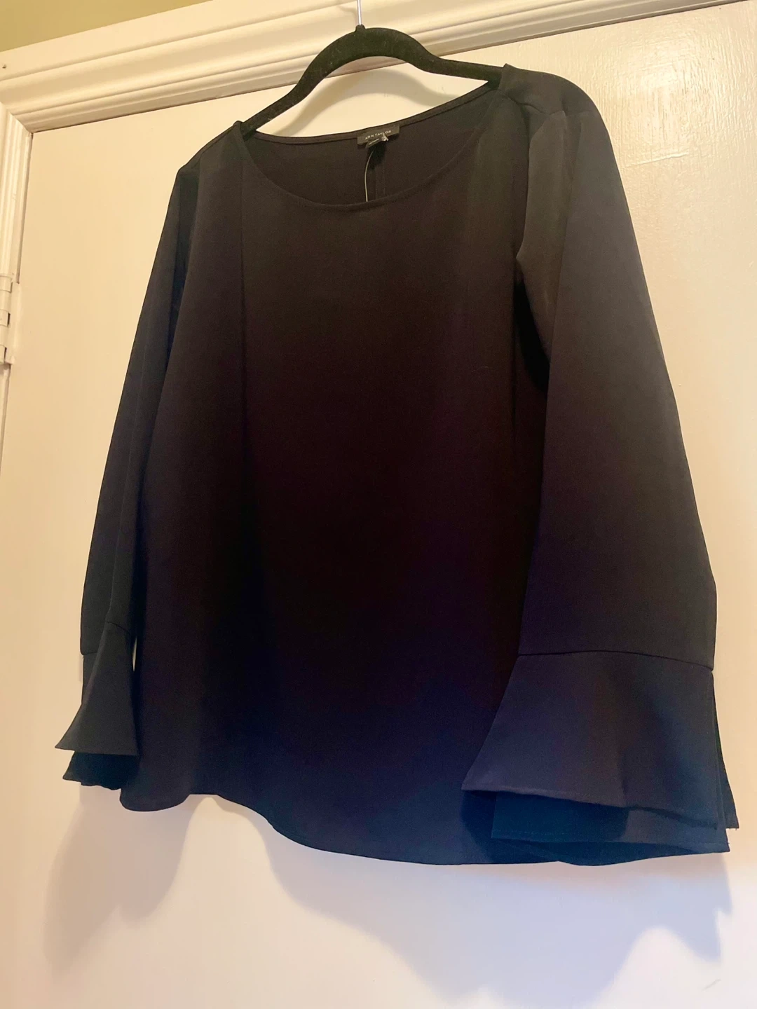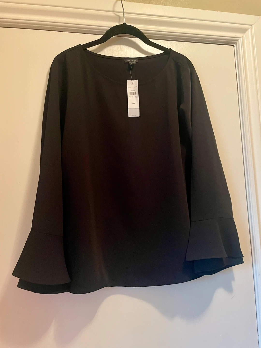 Selling a brand new Ann Taylor black blouse in size M! It has a stylish design with bell sleeves. The tag is still on and it's in perfect condition. Originally bought for $79.50