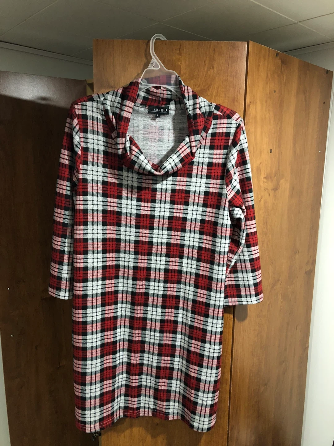 Selling an Anna Bella dress in a red, white, and black plaid pattern! It's a size large.