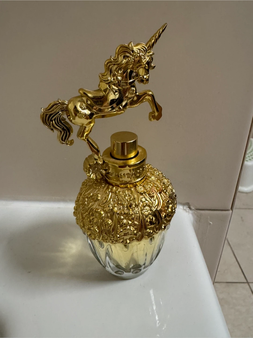 Selling a bottle of Anna Sui Fantasia Gold Edition perfume. The bottle is in excellent condition and features a beautiful golden unicorn design. Perfect for collectors or anyone who loves a touch of whimsy on their vanity
