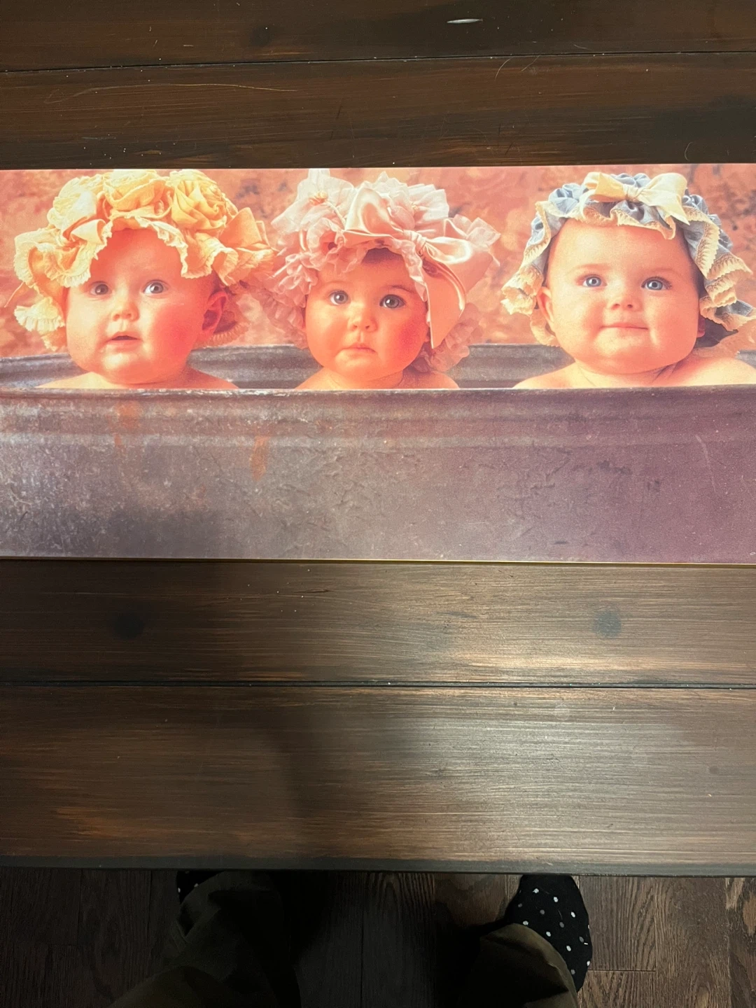 65This is a picture of babies in a tub. It would look great hanging in your laundry room- Art by Ann Geddes- measures 36 inches long by 12 inches wide- smoke free home- moving sale