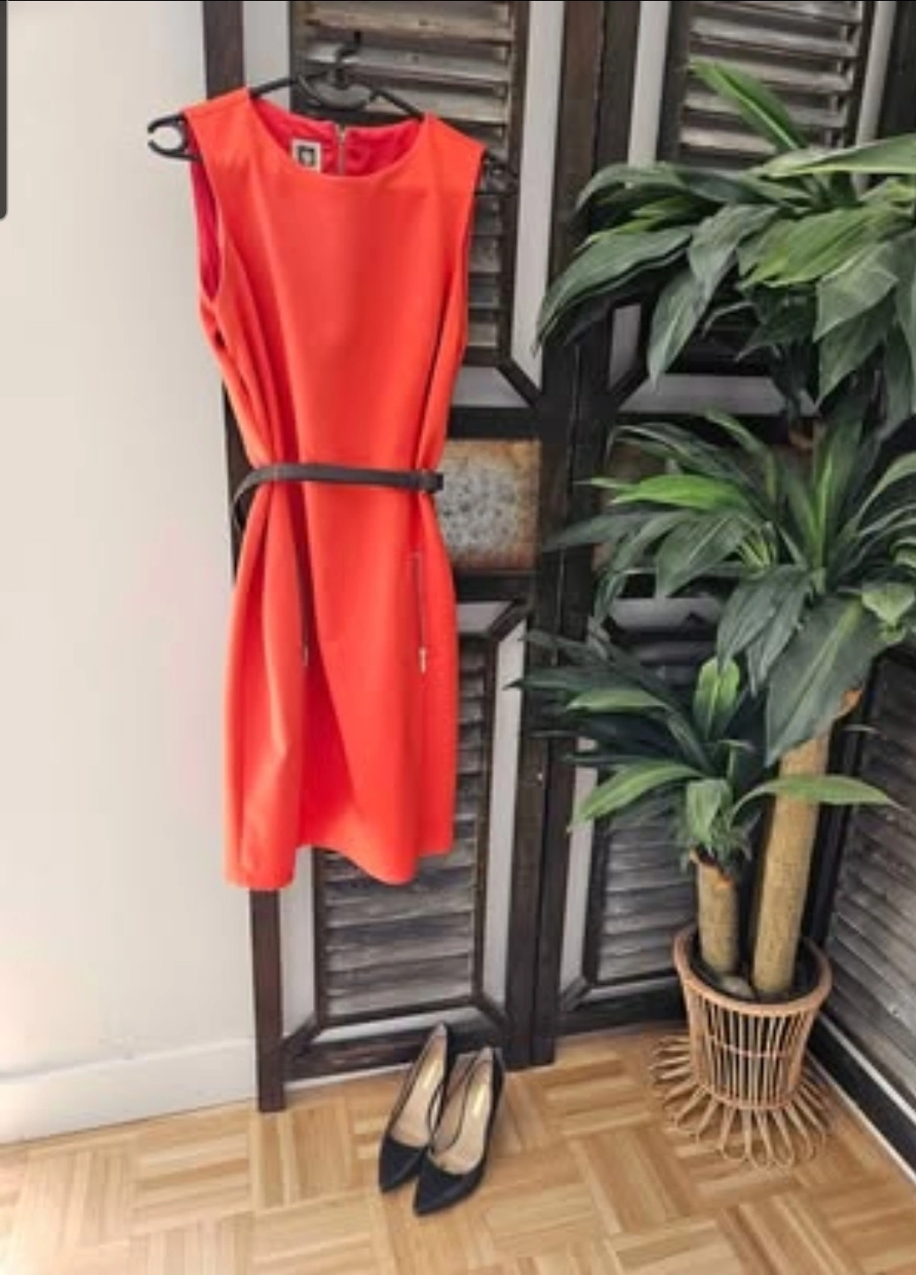 Sleeveless dress in bright orange. Includes a belt and a zipper. Great for a summer evening stroll. Pickup from Granville Skytrain station or Park Royal check my other posts too