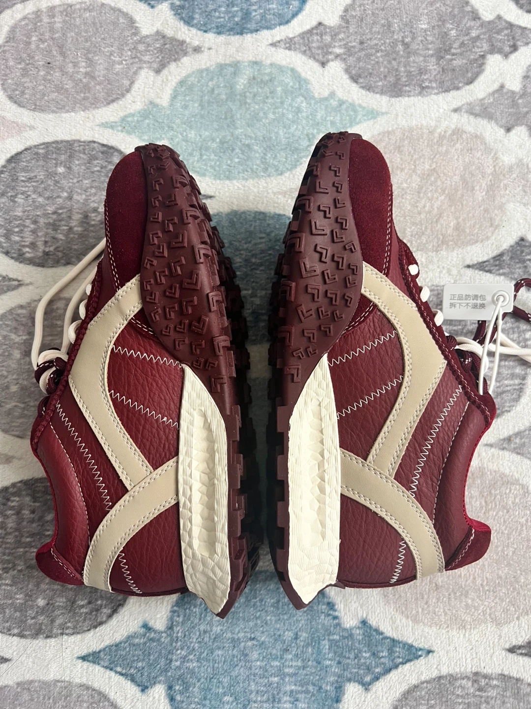Stylish athletic shoes in a deep maroon and tan colourway. These shoes feature a durable rubber sole and a comfortable interior. Lace-up closure for a secure fit. A great choice for everyday wear or light athletic activities!