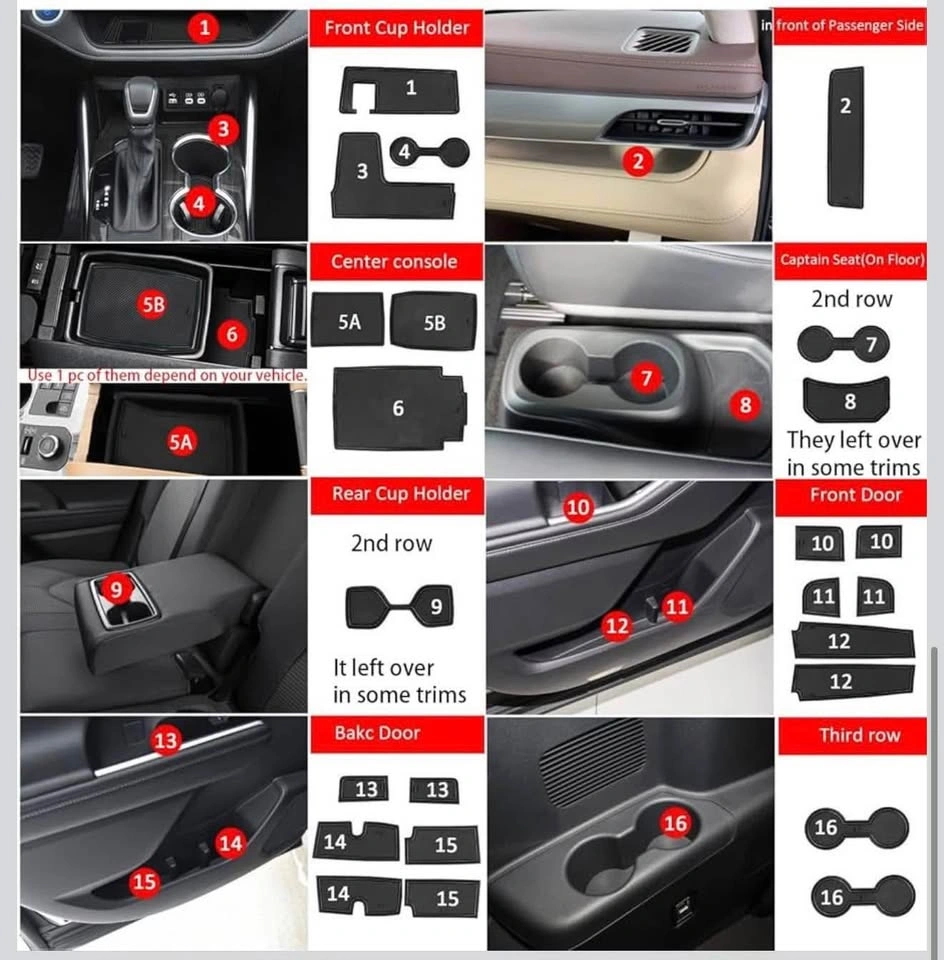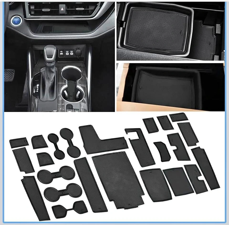 Anti Dust Mats for Toyota Highlander 2025 2024 2023 2022 2021 2020 Accessories Custom Cup Holder Insert Door Pocket Mats Center Console Interior Liners 24pc-Set (Black)