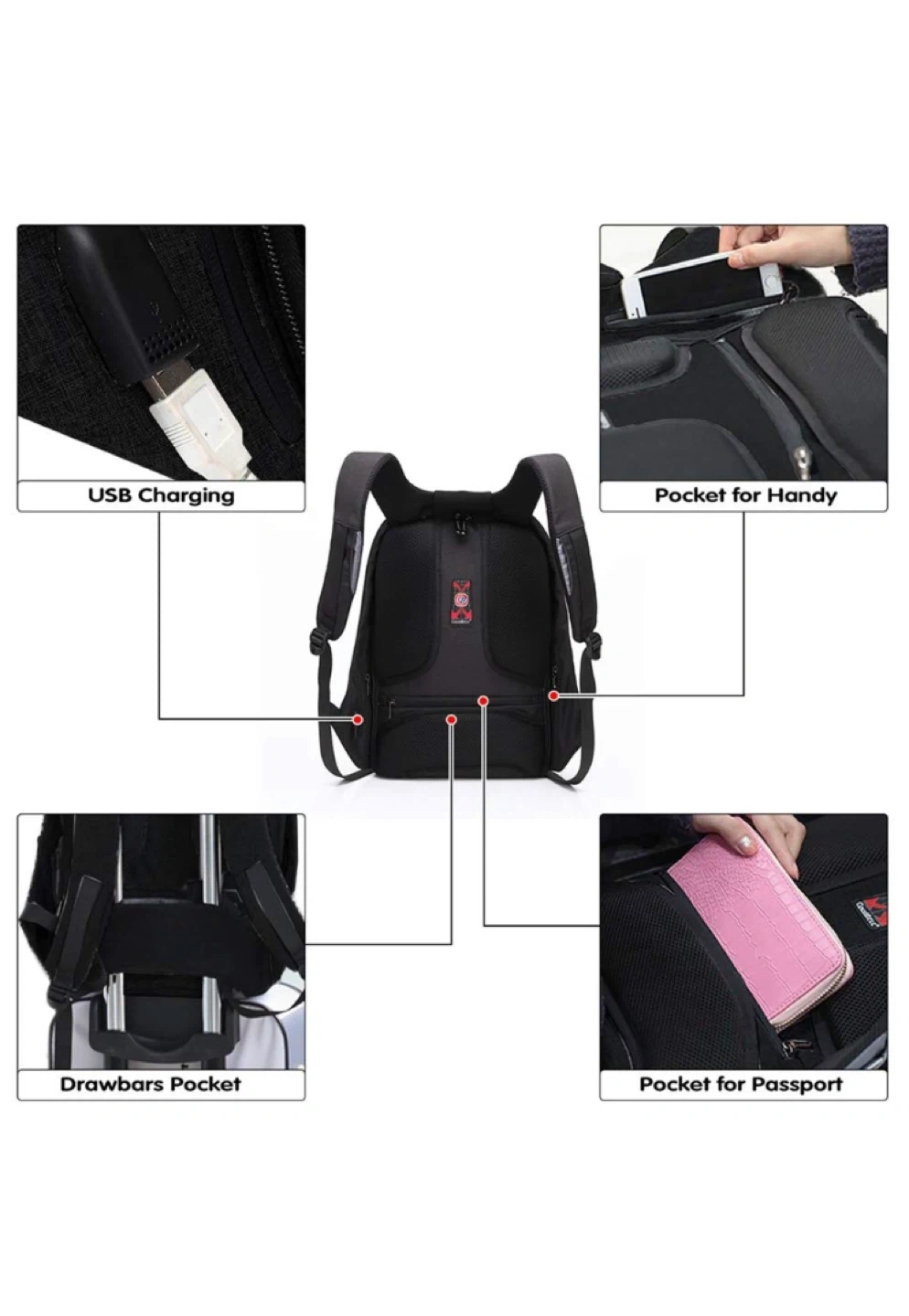Selling a black anti-theft travel backpack! It features USB charging, a pocket for your phone, a drawbars pocket, and a pocket for your passport. It's lightweight and portable, perfect for travel or everyday use