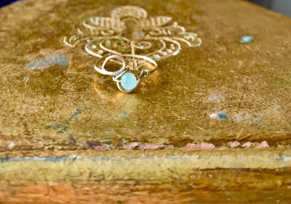 133Antique 10k ring with delicate intricate swirl design and a Jade Bead. Lovely lovely piece in excellent condition.