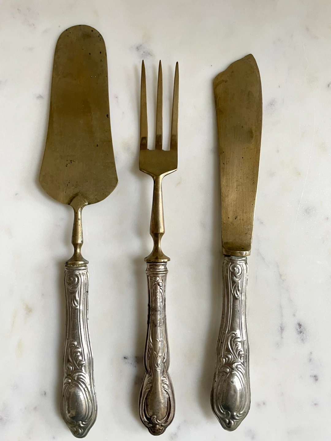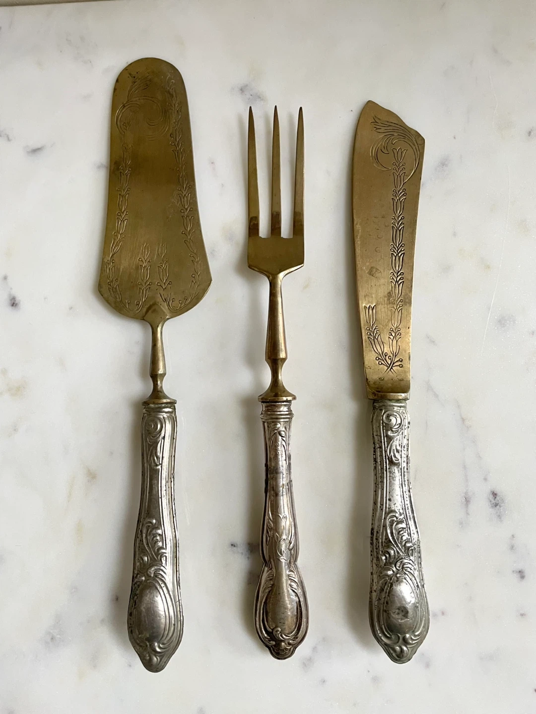 71Antique Silver Dessert Service Set - 3 piece. Antique ‘Solingen’ 800 Silver set 1900-1940’s - made in Germany Handle stamped 800 (80%) silver See pictures for size and weight. Stunning, unique 3 piece set to add to your vintage collection Reasonable offers accepted🤍