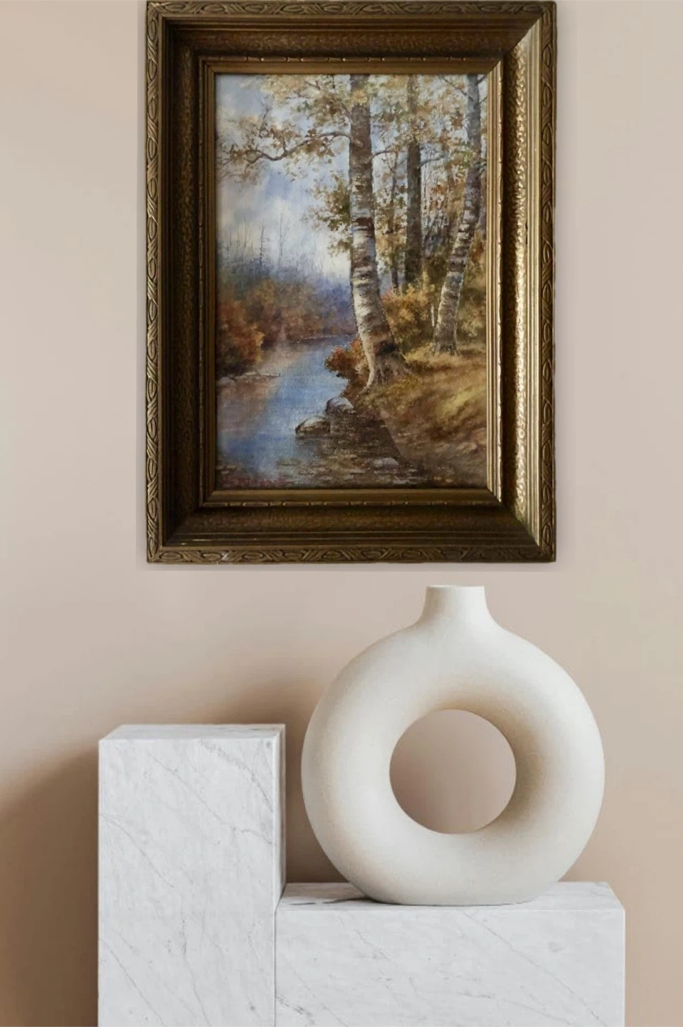 Add a piece of Canadian history to your home with this authentic antique watercolour painting by Canadian artist John Henry De Rinzy (1852–1936). Known for capturing the natural beauty of the Ottawa, Gatineau, and St. Lawrence River regions, his works remain sought after by collectors and décor enthusiasts alike. ✨ Details: - Original watercolour, not a print - Signed by the artist (lower right) - Original ornate antique frame - Dimensions: Frame approx. 14” x 19” Depicts a peaceful autumn river scene with birch trees – warm, inviting, and timeless This piece would look stunning in a living room, office, cottage, or as part of a curated vintage décor collection. 📍 Pickup: Oakville, ON