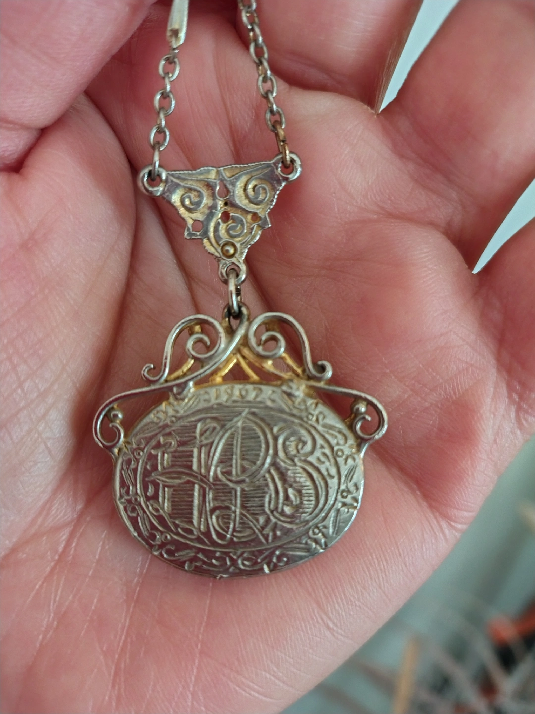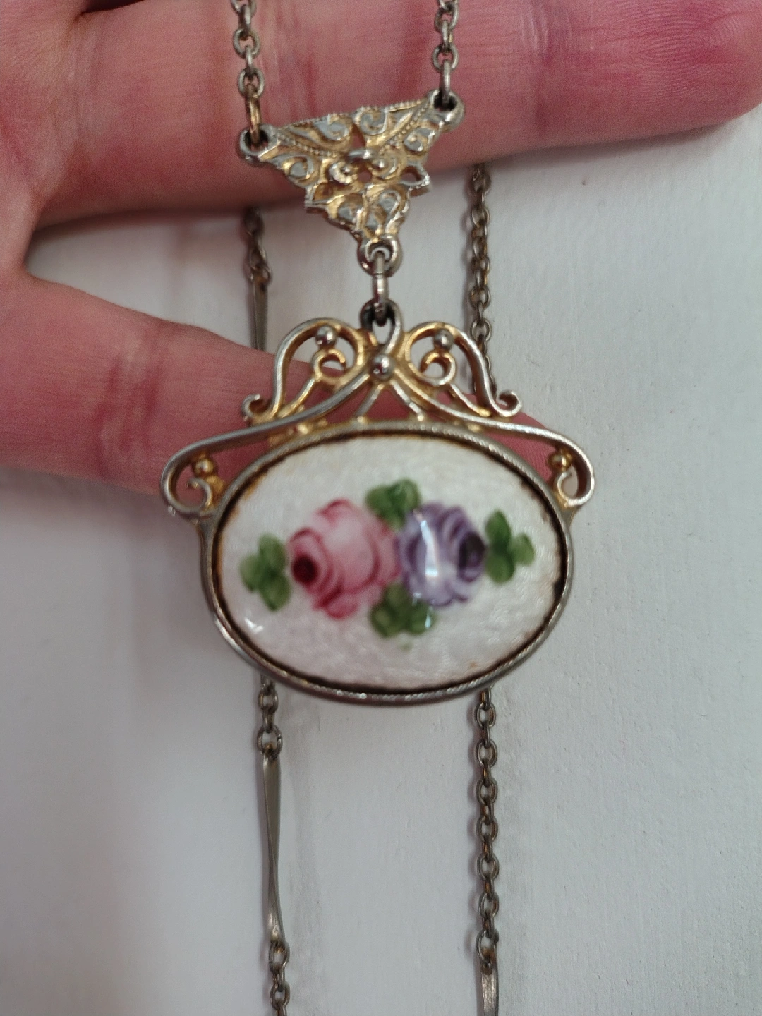 27Selling a vintage silver tone necklace. It features intricate detailing and a unique design. A lovely piece to add to your collection!