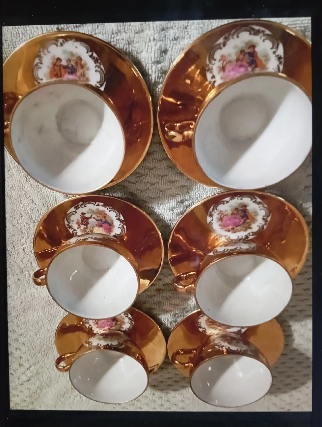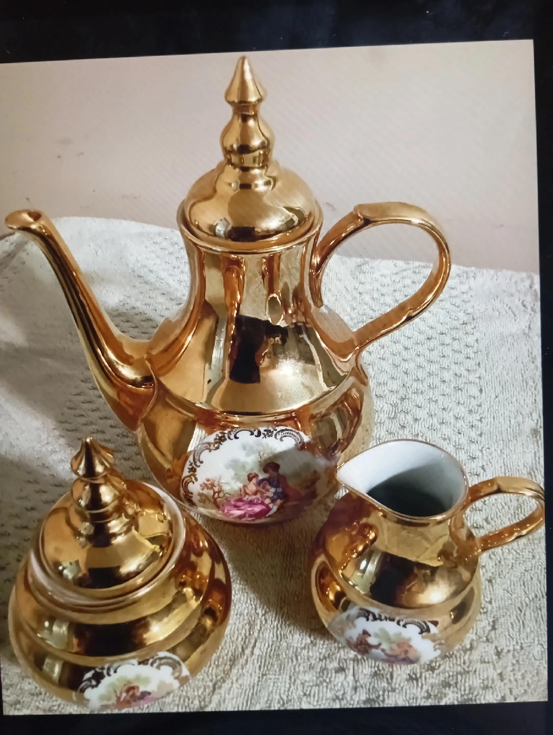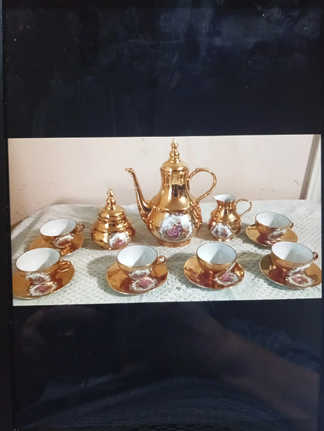 Selling a beautiful gold tea set by Valdelvira España. Includes a teapot, sugar bowl, creamer, and six cups with saucers. This set is in perfect condition and ready to add a touch of elegance to your tea time and gold lovers. Meet-up Local Area, Ca$h only ✌🏼😊