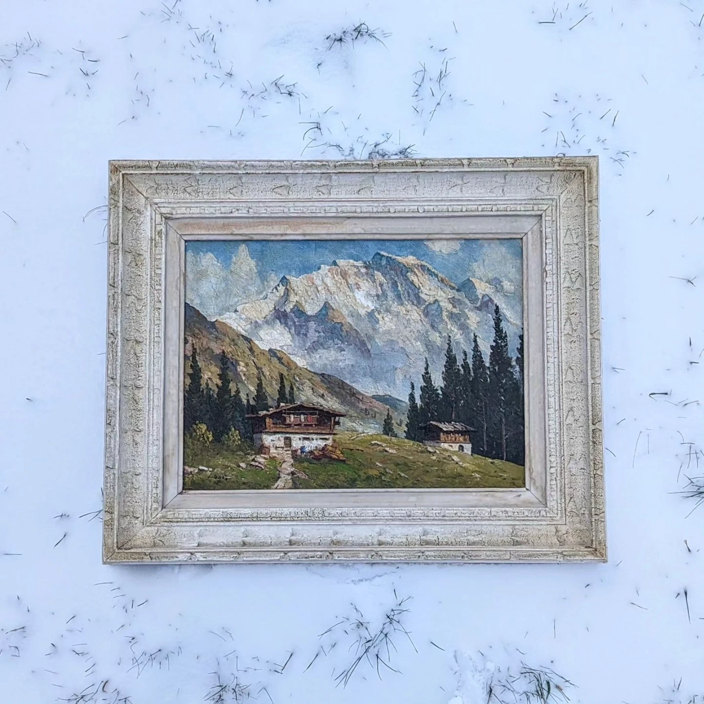 103Gorgeous Antique Original Oil Painting Signed. 1875-1905 Painted by J. Lobis. Antique Wood Picture Frame with Hanger. Alpine Cottage Mountain Landscape. Dimensions 22" x 18" Frame 1-3/4" deep 15-1/4" x 11.5" Painting Palette Knife Painting Oil Antique Wood Frame Excellent Condition This is an original. $300 {Firm} π¨ π {Serious inquiries please} Cash No shipping Pick up only Hamilton Mountain Fennell and Upper Gage House with parking available ββ Please view my many listings for Sale π¨