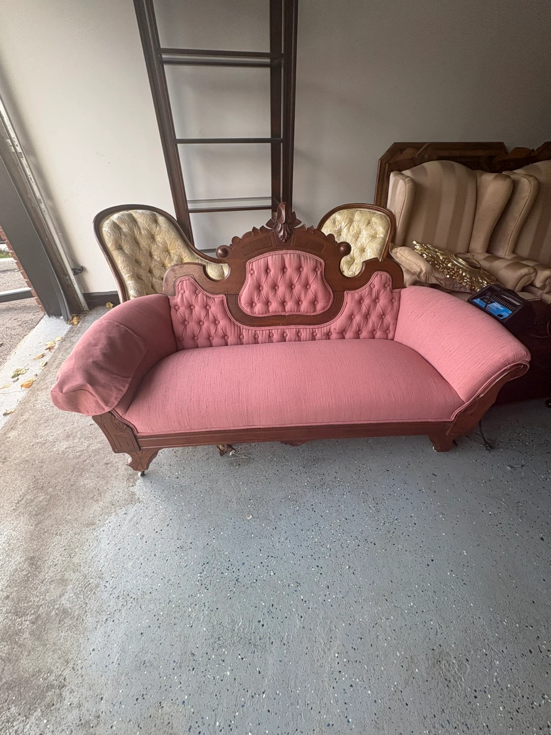Antique Pink Tufted Settee