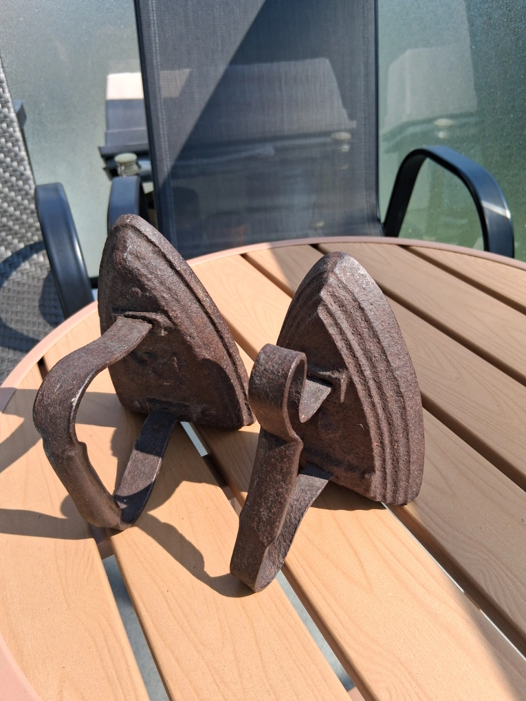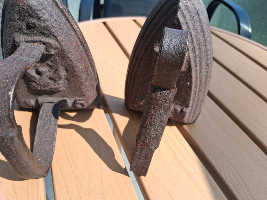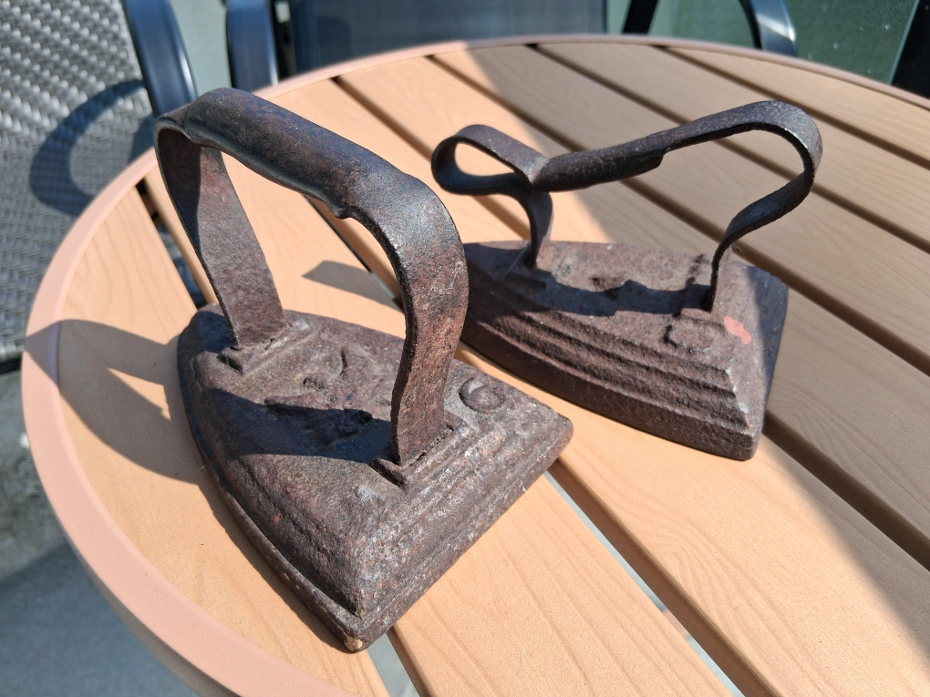 10Selling a set of two antique sad irons. These are in used condition with some rust, as you can see in the photos. They would make a great addition to a collection or as a decorative piece!