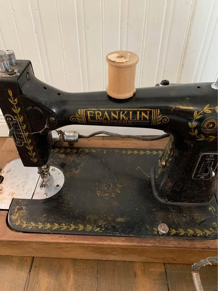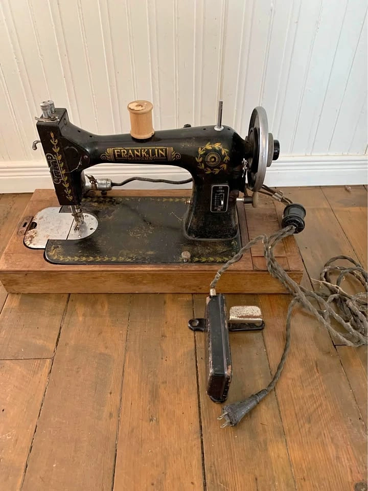 24Roughly from mid 1930’s this is the Franklin rotary sewing machine by sears Roebuck. Comes with case food Pedal and light. Excellent display piece. Motor runs.