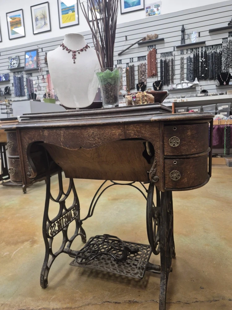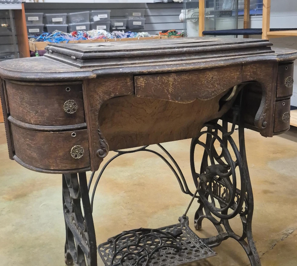 60Beautiful old treadle sewing machine with ornate cast-iron base and original cabinet. Machine is present but untested. Cabinet has wear and needs TLC, so it’s priced accordingly. Great for a repurpose project, plant stand, display table, or restoration.