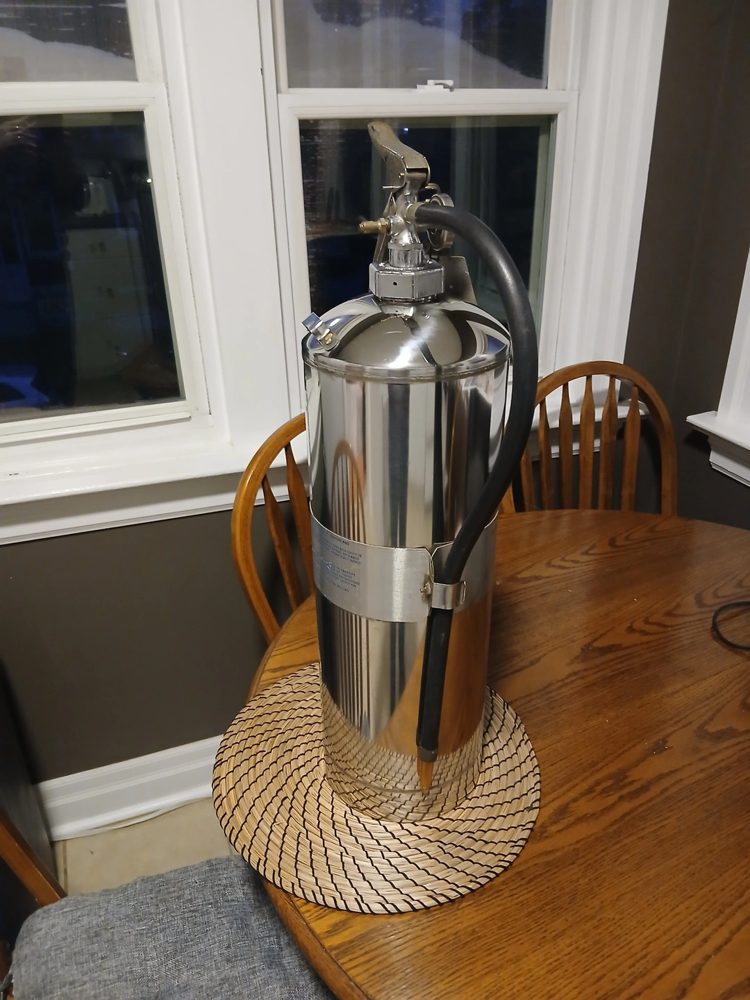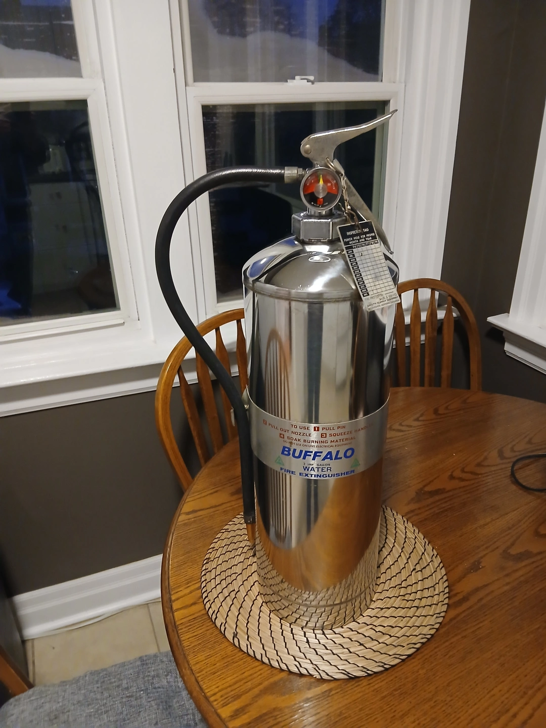 101975 Vintage Buffalo Fire Extinguisher Chrome - For Film Prop Set or Curioso Novelty Display only In great condition for year. Slight chrome pitting on handle which will come off with some chrome polish Too heavy to post Pick up only from the Junction area Toronto I have three of these if you want more than one, message me. This is for the sale of one, only