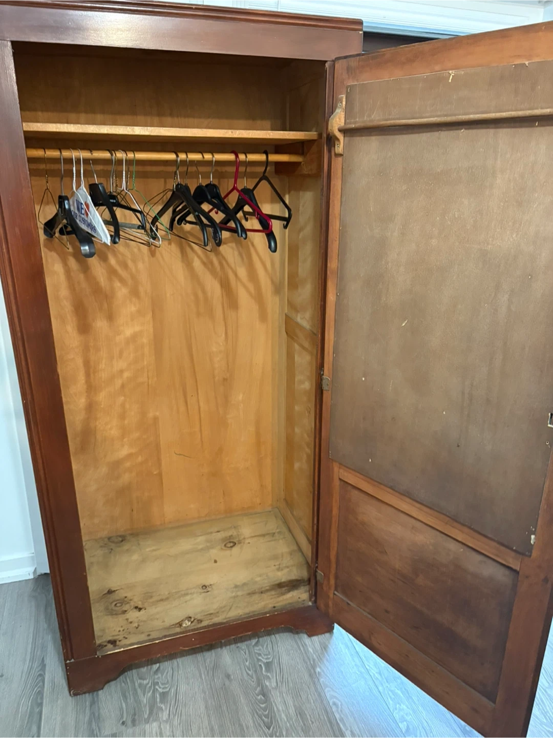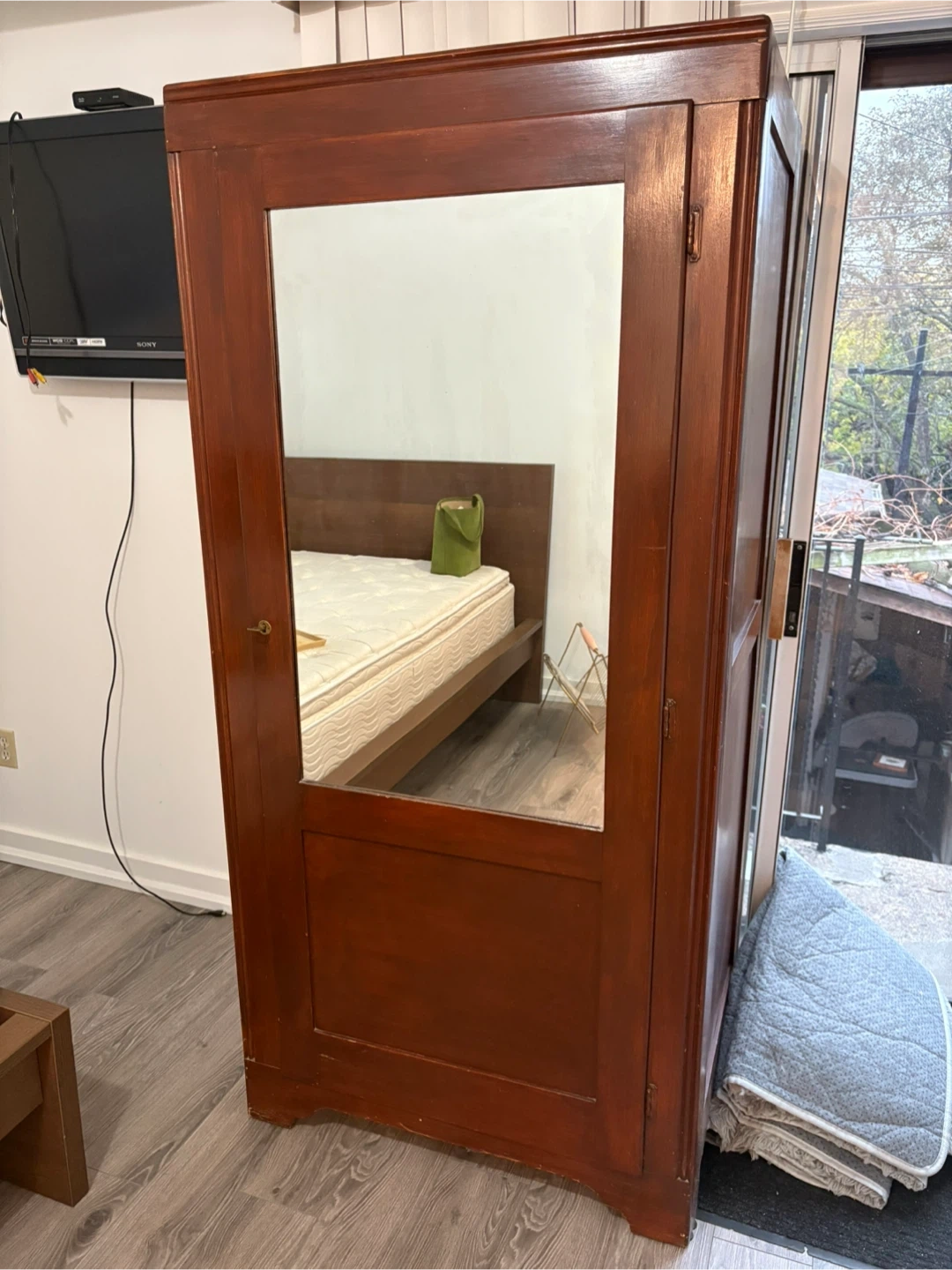 84Selling a lovely antique wooden armoire. It's in good condition and features a mirror on the front. Original key included! The armoire measures approximately 34 inches wide, 24 inches deep, and 72 inches tall. Perfect for adding some vintage charm to your home! *Pick up Downtown Toronto