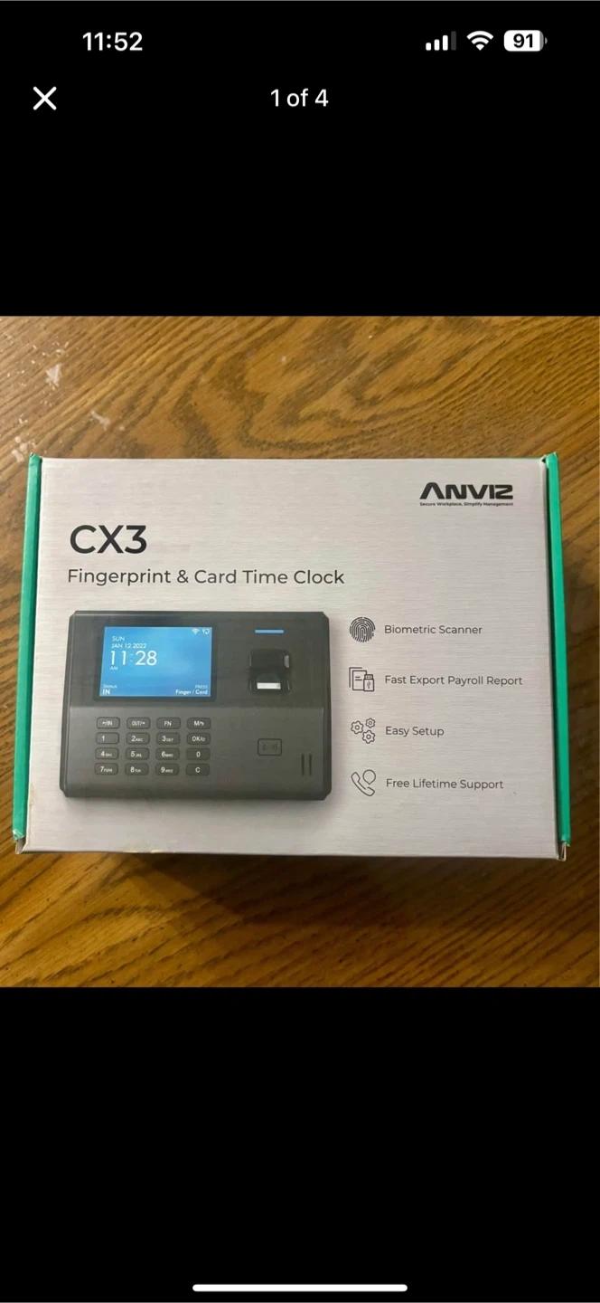 5Selling an ANVIZ CX3 Fingerprint & Card Time Clock! It comes with everything you see in the pictures, including the box. It features a biometric scanner, fast export payroll report, easy setup, and free lifetime support. Great for keeping track of time at your workplace!