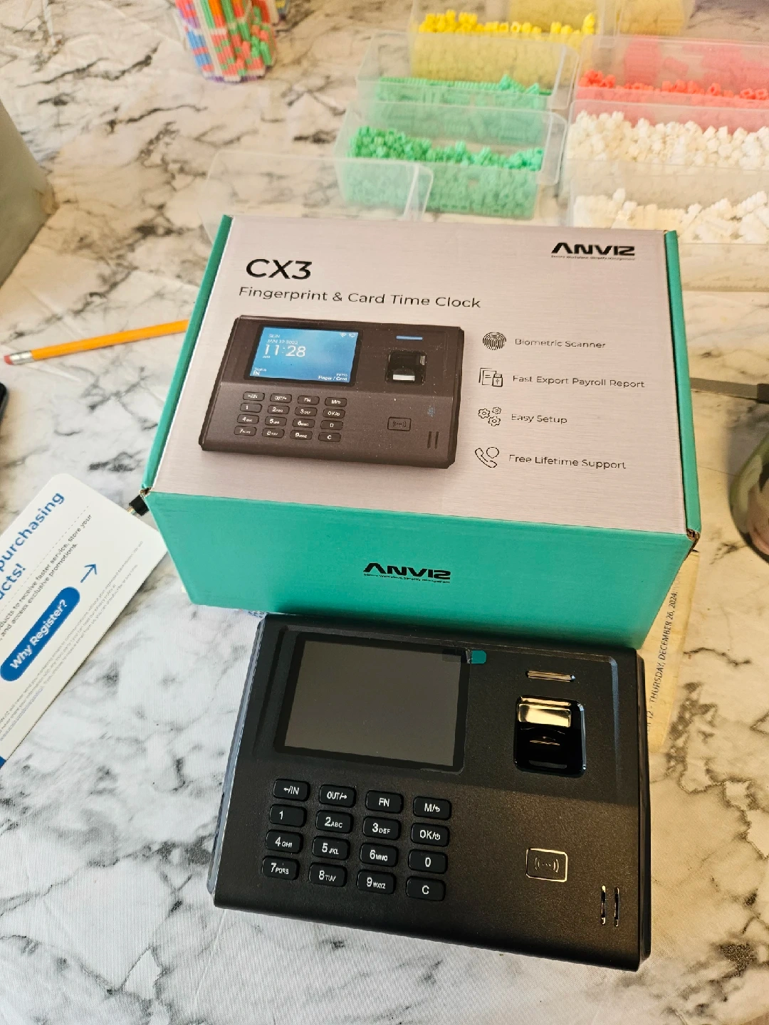 10Selling an Anviz CX3 Fingerprint & Card Time Clock! It comes with its original box. This time clock features a biometric scanner, fast export payroll report, easy setup, and free lifetime support. Great for small businesses!
