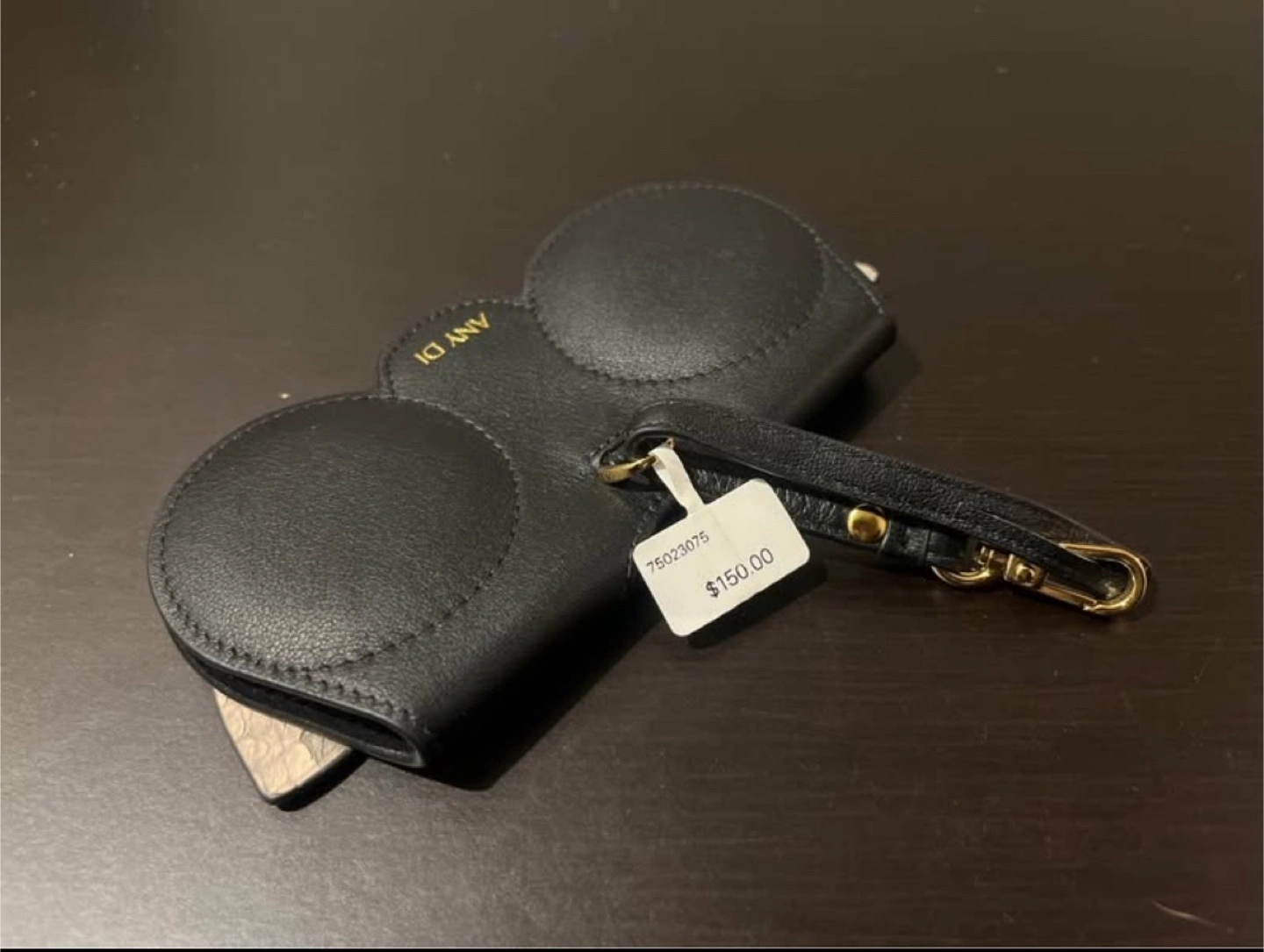 Check out this stylish sunglasses case from ANY DI Munich! It's made of black leather and features a unique design. Brand new as shown from the photo. Perfect for keeping your sunglasses safe and looking good.