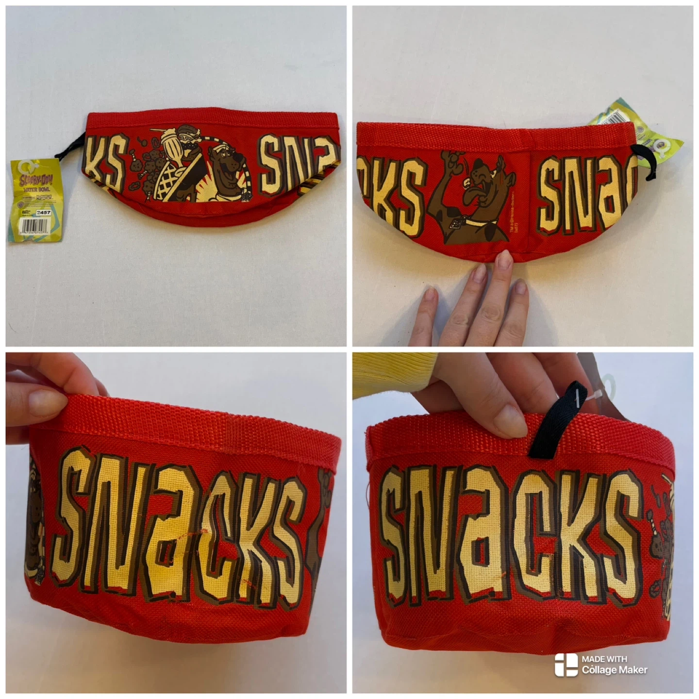 Scooby Doo, dog bowl, collapsible bowl, travel pet bowl, fabric dog bowl, Scooby Snacks, pet accessories, NWT dog gear, portable water bowl, cartoon dog bowl