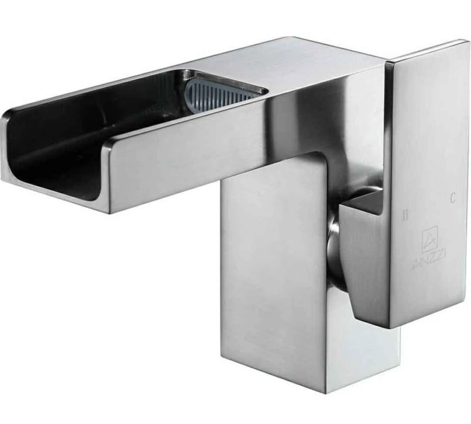 ANZZI Zhona Series Single Hole Single-Handle Low-Arc Bathroom Faucet in Brushed Nickel. BRAND NEW IN BOX $215 Model number KF-AZ127 ANZZI presents the Zhona Single Handle Bathroom Sink Faucet. Crafted using RHINO ALLOY certified brass as the interior and our Lustrous Brushed Nickel rust resistant finish. Singular (1) lever handle control. Elegantly sculpted waterfall spout inspired by the latest European styles. Deck mounted single (1) or three (3) hole installation. Spout Reach: 5.08 in., Spout Height: 4.73 in.