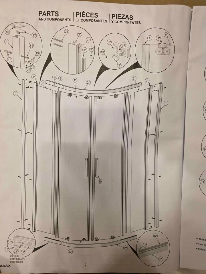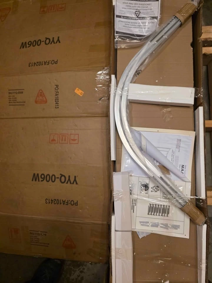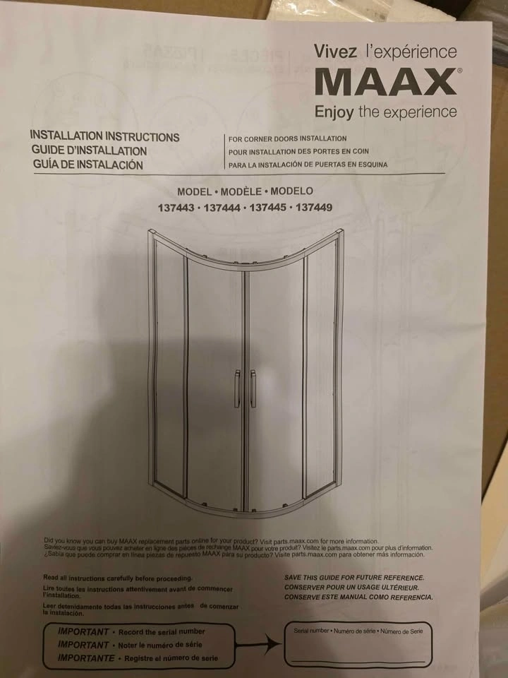 Brand new in the box. MAAX RADIA NEO-ROUND SLIDING SHOWER DOOR ASSEMBLY - CHROME / CLEAR - 32" X 71.5". Model: 135443-900-084-000. Retails for $770+. Base sold separately. Neo-round sliding door configuration features two sliding glass panels and two stationary panels. Semi-frameless clear glass panels are 6 mm (1/4-inch) thick. Reversible installation for left- or right-hand opening. Magnetic and aluminum extrusion for a better watertight closure. Features MAAX Clip-and-Push System for easy cleaning. Glass panels come with Lotus Easy Clean Glass Protection. Panels are pre-assembled with hardware and side jambs for fast installation. 3/4-inch of out of plumb adjustment. Door made of ANSI certified tempered glass. All mounting hardware included. Pick up in Innisfil (Innisfil Beach rd. & Webster blvd.) or Barrie meet up.
